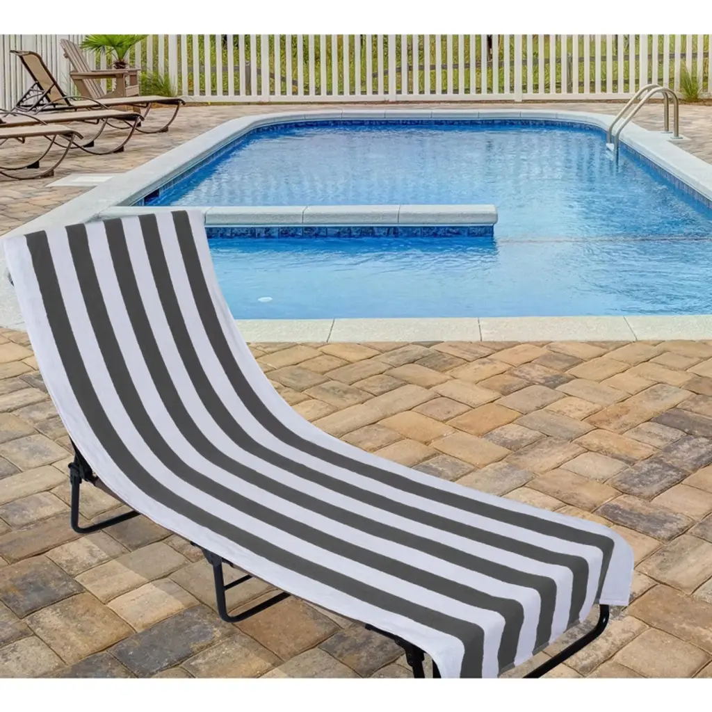 Design Imports Gray Stripe Lounge Chair Beach Towel With Top Fitted Pocket 26x82