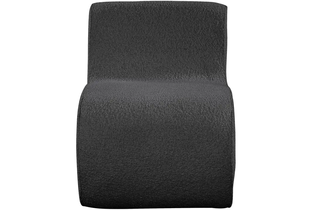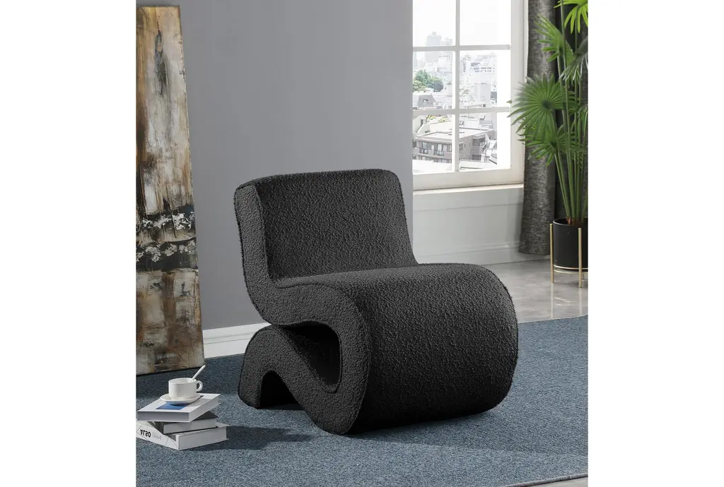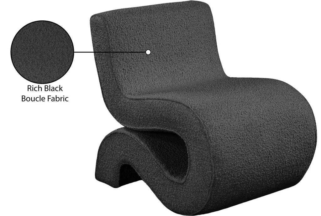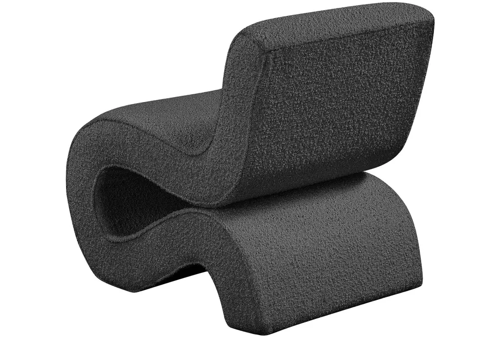 Introducing the Desiree Black Boucle Fabric Accent Chair – a modern masterpiece for your living room. This armless chair boasts a curved design, making it a stylish and functional addition to any space. Upholstered in a luxurious boucle fabric, it ensures both comfort and durability.