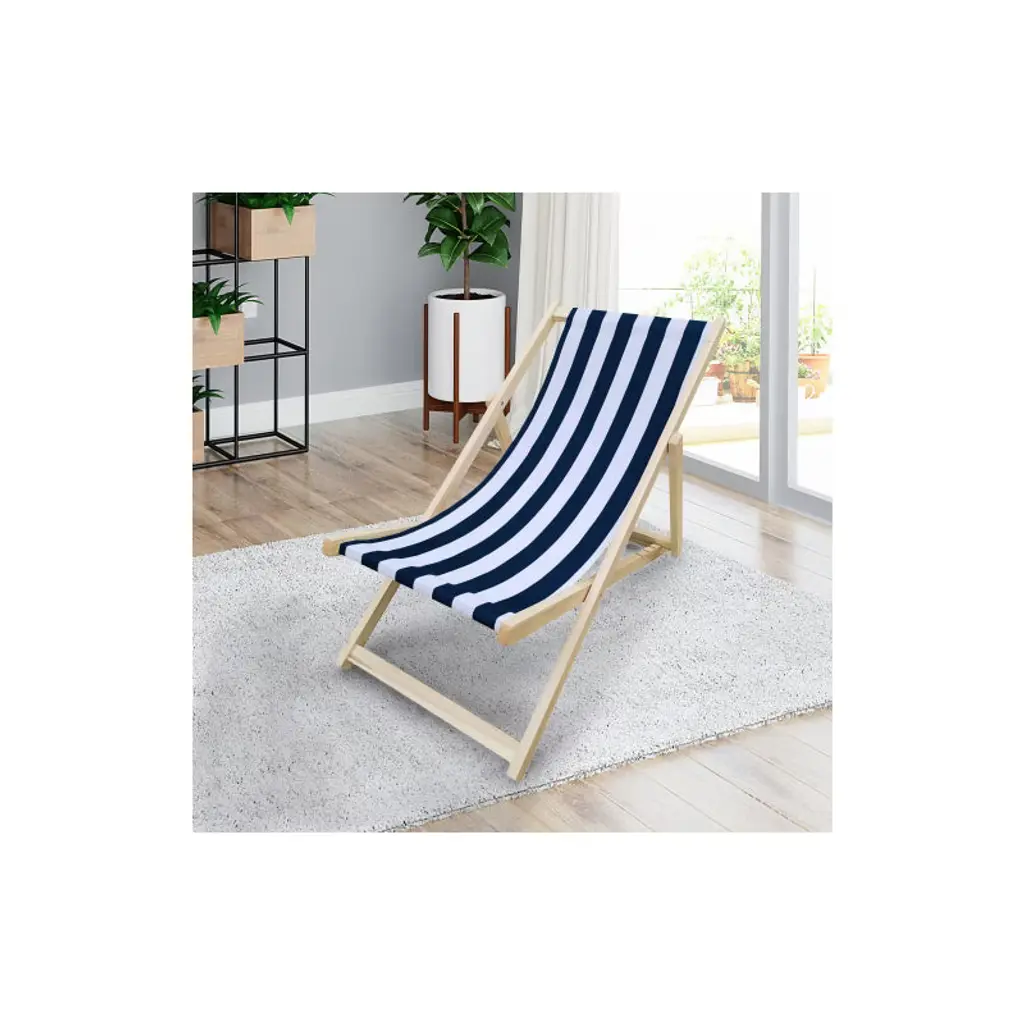Dexmalle Outdoor Folding Lounge Chair With Blue Stripe