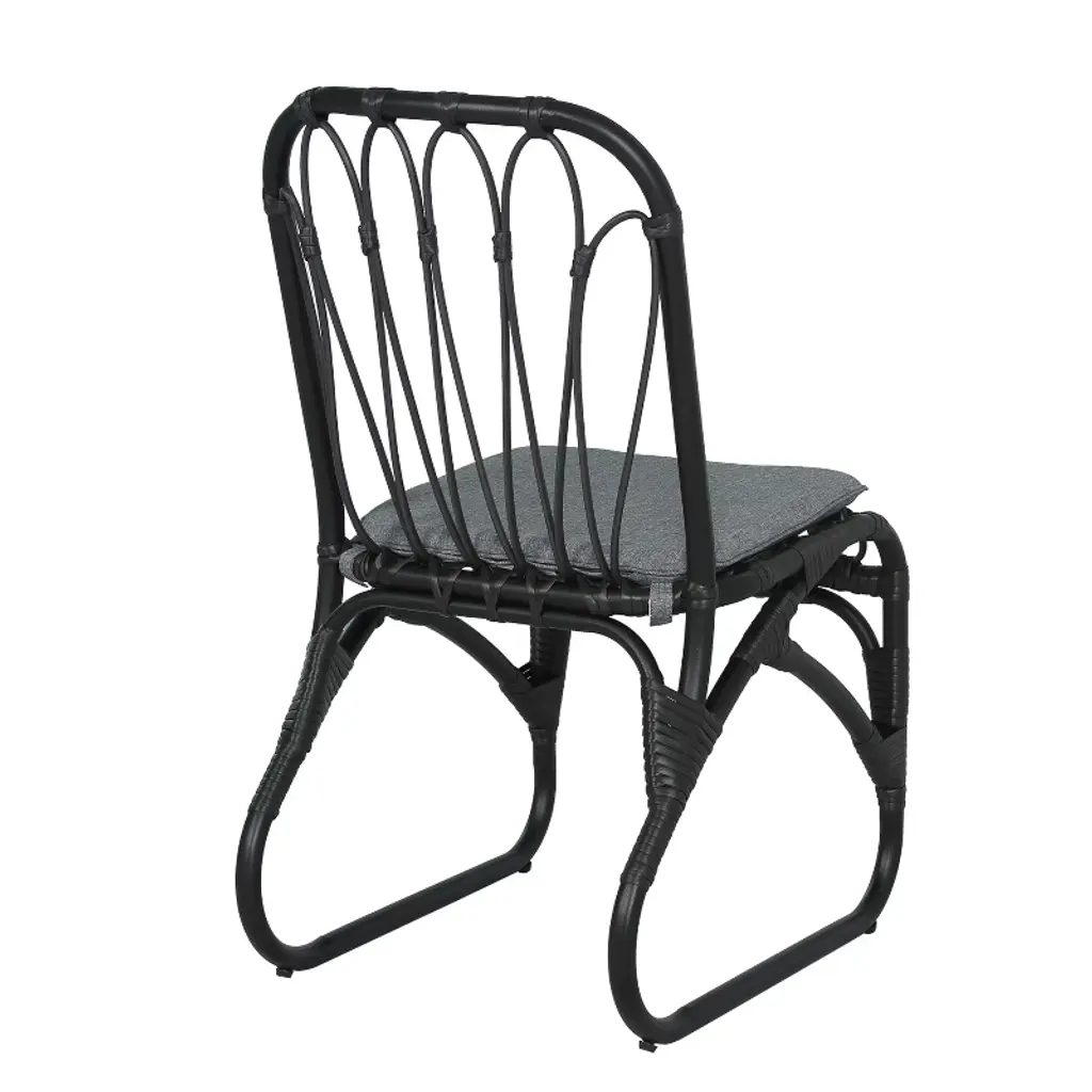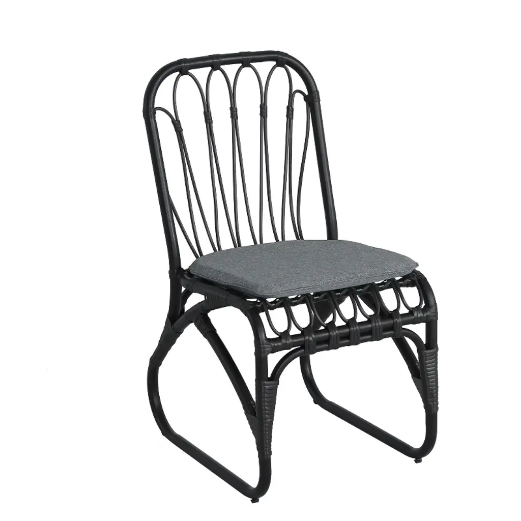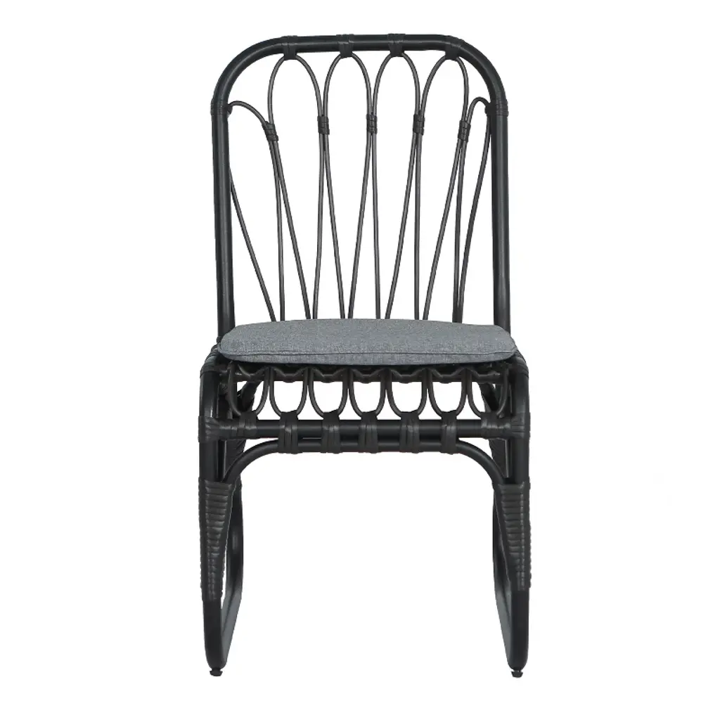 This outdoor chair features a durable iron frame and elegant hand-woven rattan, designed to withstand the elements. With a weight capacity of 400lbs, it provides sturdy, comfortable seating for all. The unique petal-shaped backrest adds a stylish touch, while adjustable foot pads allow for height customization on uneven surfaces. The 1.2-inch thick cushions offer extra comfort and are covered in washable polyester fabric with a zipper for easy cleaning. Available in two colors, this chair comes fully assembled and requires minimal maintenance. Simply wipe with a cloth to keep it looking fresh, making it perfect for any outdoor space.
