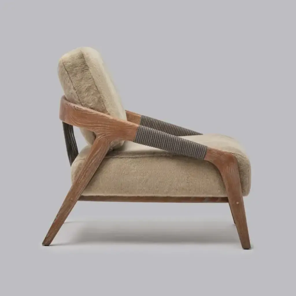 Midcentury modern gets the luxe treatment in the form of the Dexter Lounge Chair thanks to its unique silhouette, tonal leather detailing, autumn brown wood frame and fawn cashmere upholstery. This item is made of solid wood. Item will not be exactly as pictured, subtle deviations in hue after finishing can be expected as a result of natural variations in coloration of the base material.