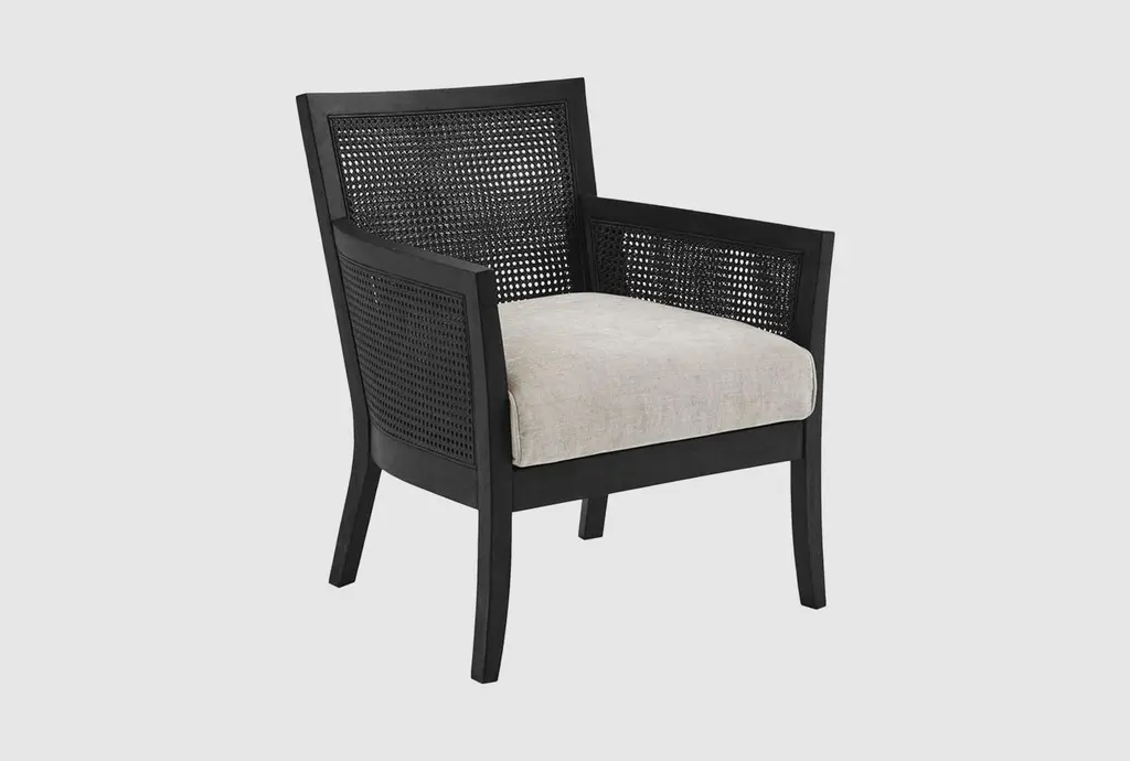 Relax in the comfort and simple style of the Madison Park Diedra Cane Armchair. The unique cane back and sides display a charming farmhouse look. A loose seat uses high-density foam filling for long-lasting comfort and exceptional support. Place this accent chair in your living room or home office for a chic update to your decor. Assembly required, tools included.