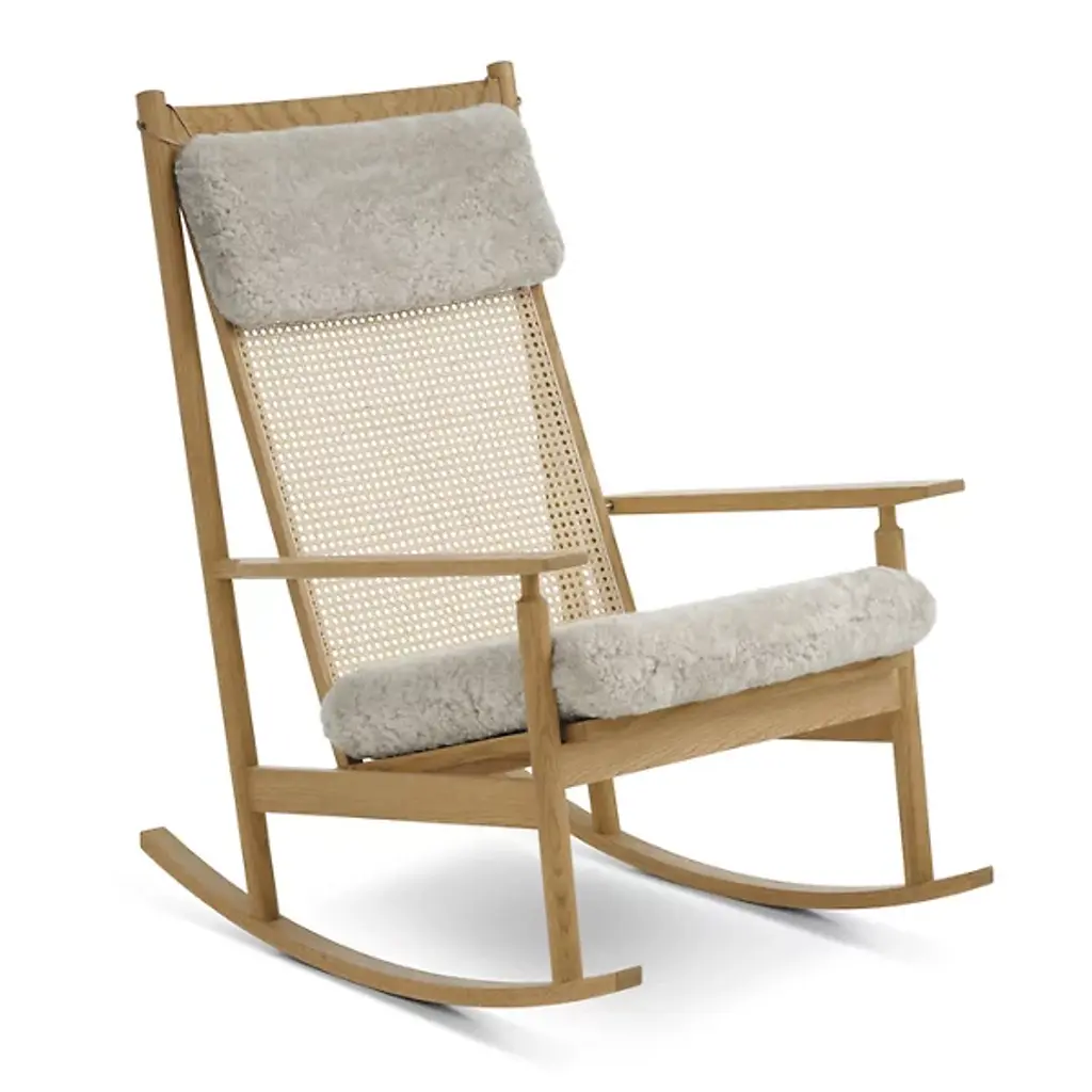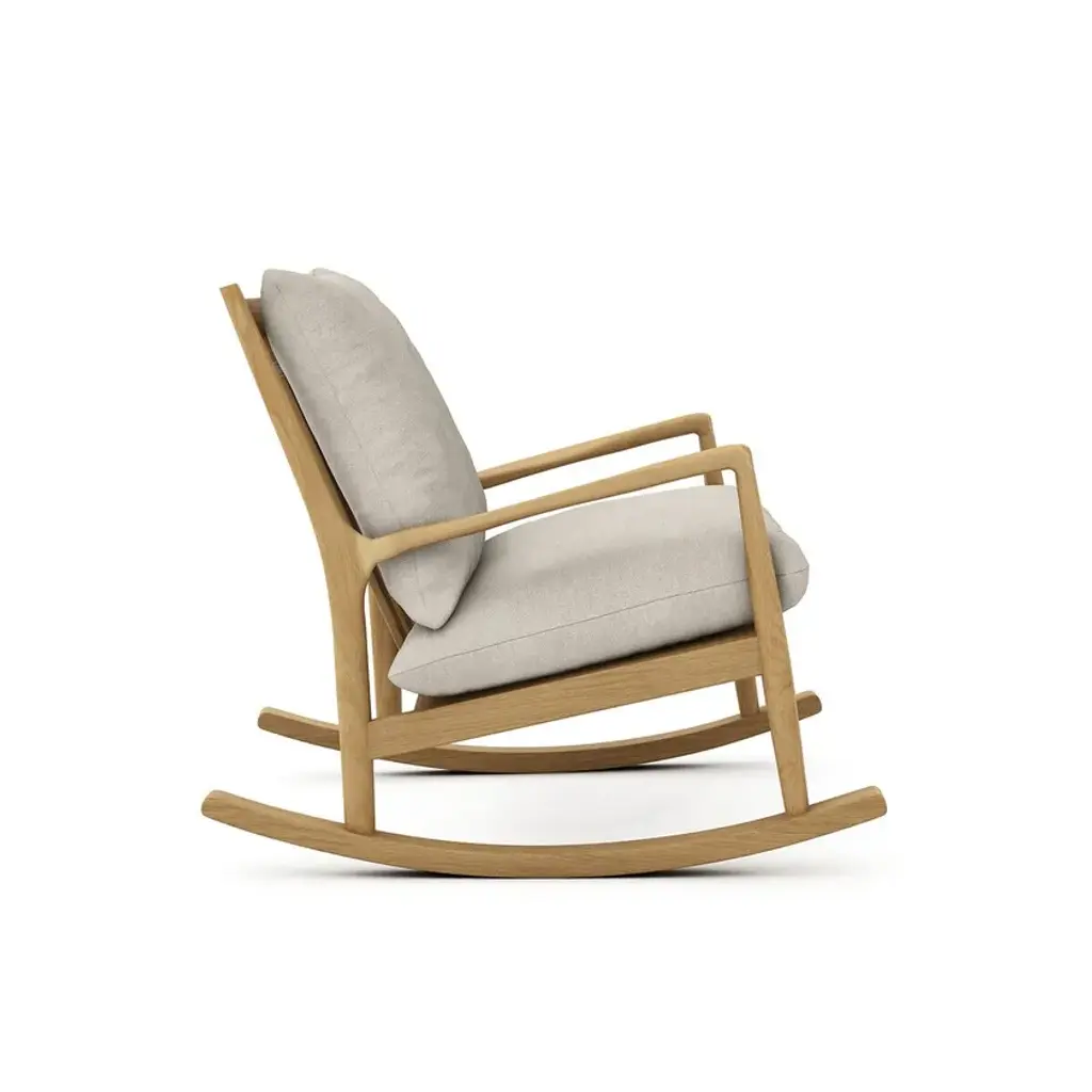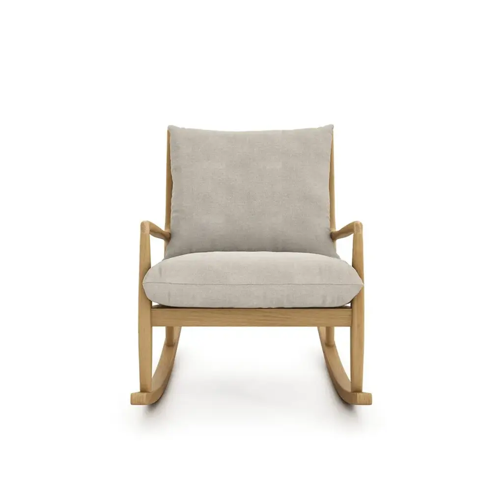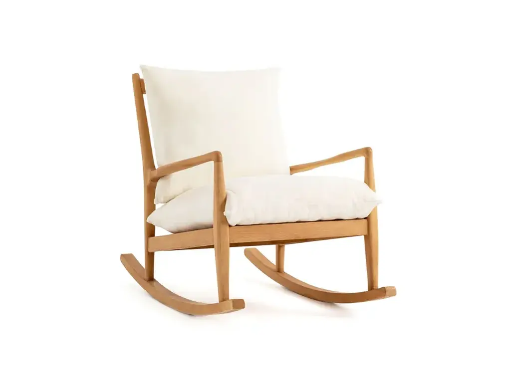 The Dilma rocking chair is characterised by the simplicity of its FSC® solid oak frame. Its organic lines, sculpted armrests and polished corners evoke the softness of the Scandinavian armchairs of the 1950s. The correct inclination of the backrest and the comfortable linen cushions make it a decidedly timeless armchair. Dilma, an iconic armchair by AMPM.Upholstery in 100% linenSolid oak® frame with nitrocellulose finishSeat in oak veneered plywood