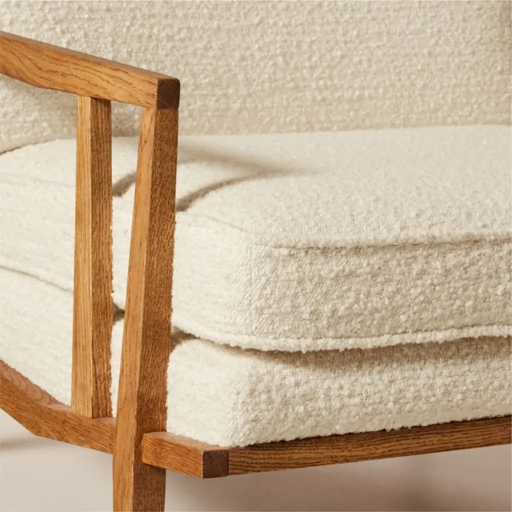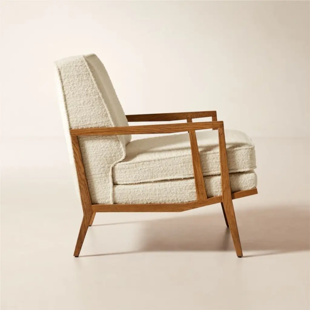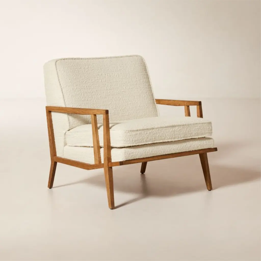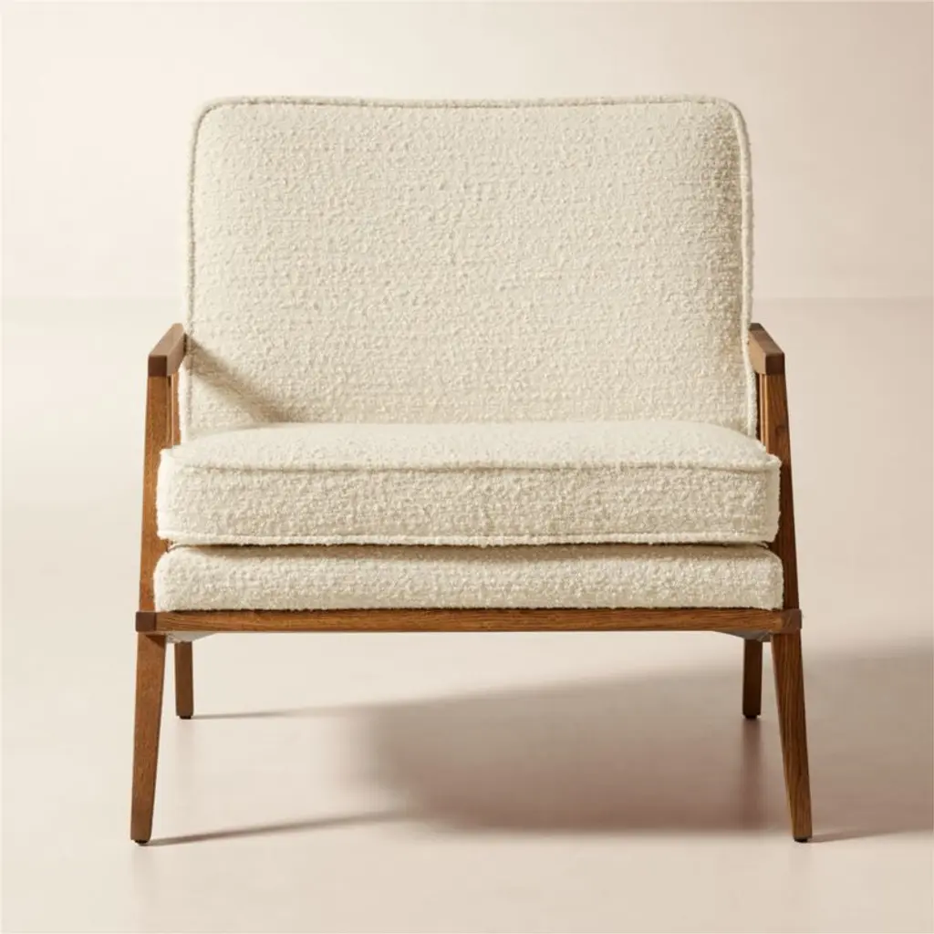 Low-profile lounge chair embodies the elegance and timelessness that made Paul McCobb an icon of midcentury American furniture design. Originally designed by McCobb in 1950 for Custom Crafta collection highlighted in the 1952 "Good Design" exhibition at New York City's Museum of Modern Artthis reintroduction honors the chair's original form with sharp angles and a minimalist silhouette. Made in Europe, the chair is wrapped in rich Italian ivory boucle for a soft, textured contrast to its clean lines. Honest materials such as a solid warm oak frame, certified sustainable by the Forest Stewardship Council , stay true to McCobb's vision of simplicity and quality. CB2 exclusive.