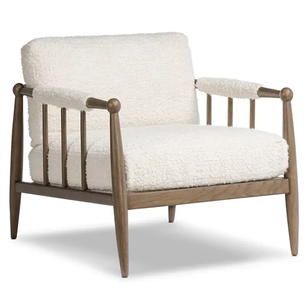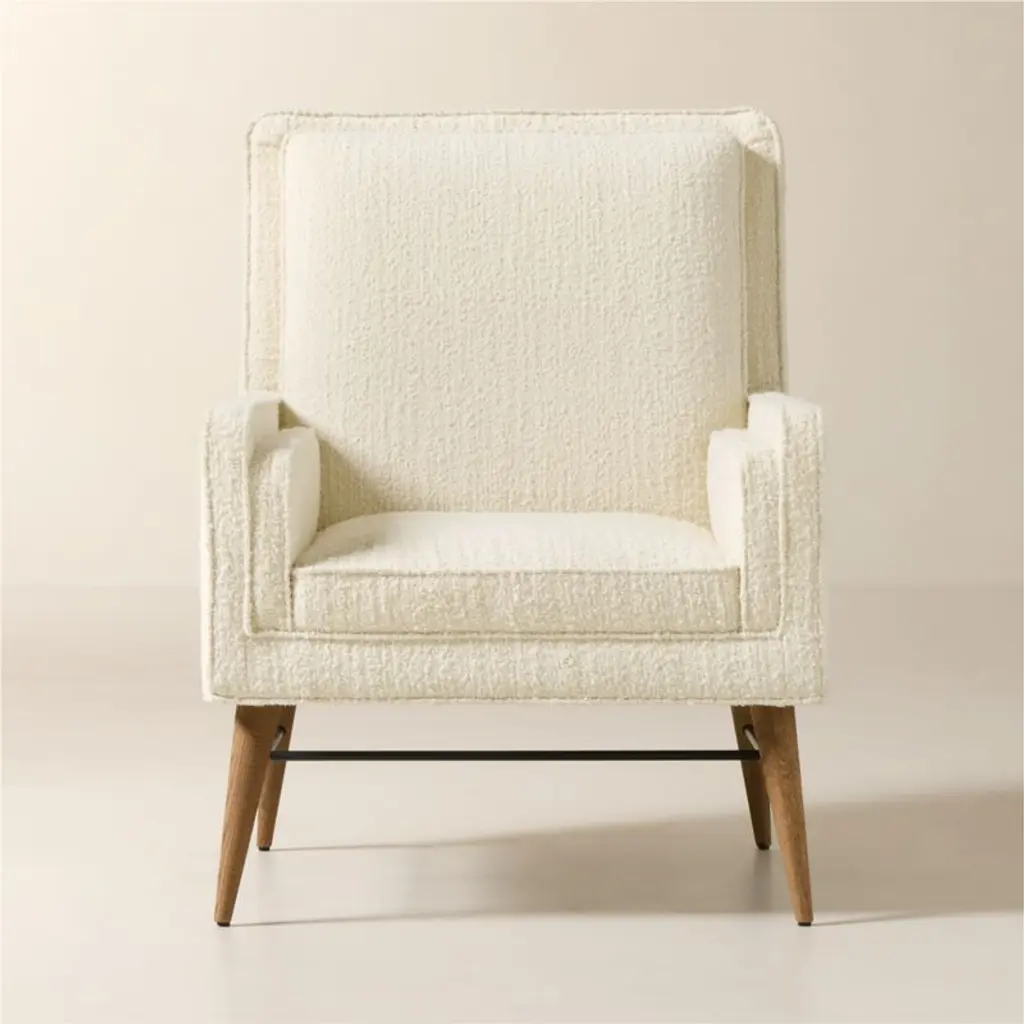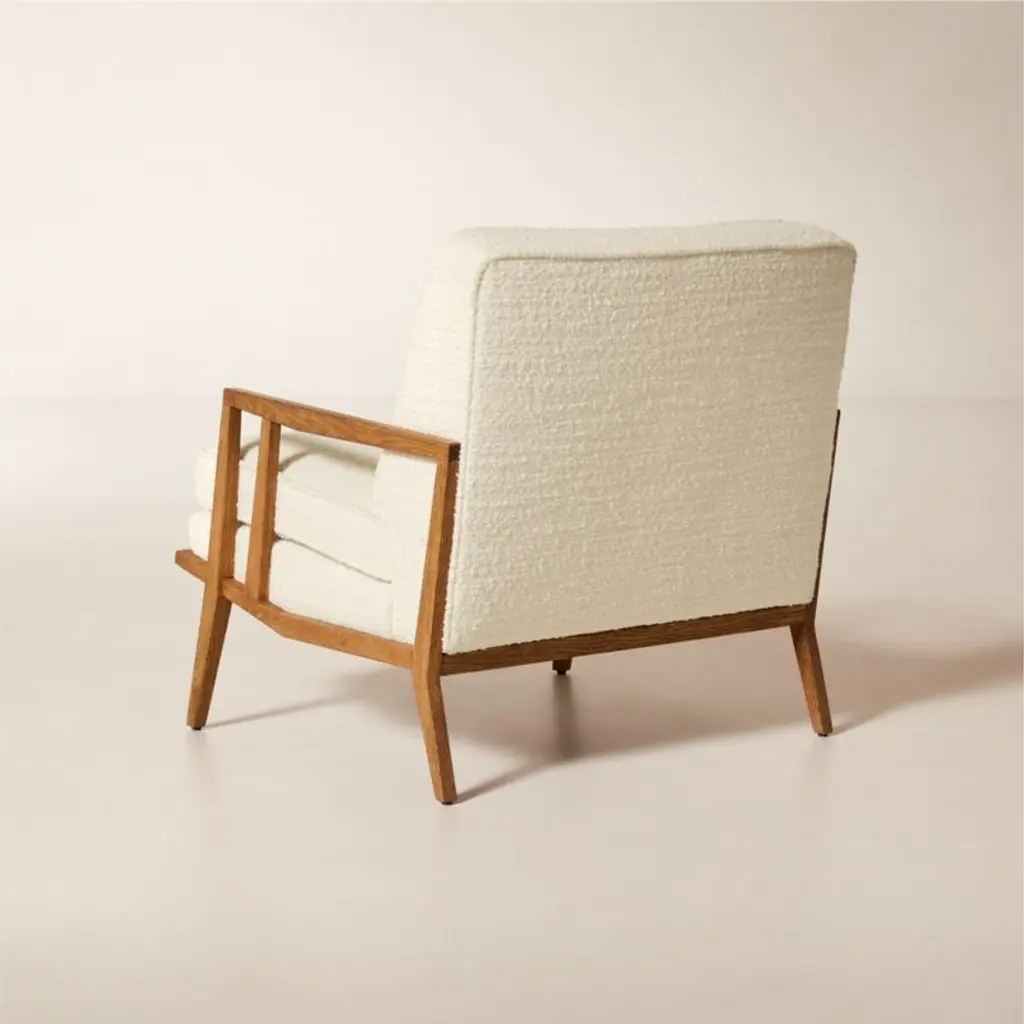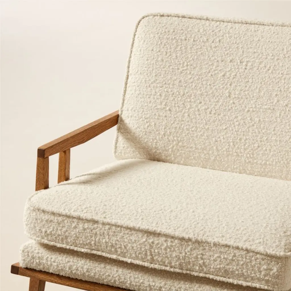 Low-profile lounge chair embodies the elegance and timelessness that made Paul McCobb an icon of midcentury American furniture design. Originally designed by McCobb in 1950 for Custom Crafta collection highlighted in the 1952 "Good Design" exhibition at New York City's Museum of Modern Artthis reintroduction honors the chair's original form with sharp angles and a minimalist silhouette. Made in Europe, the chair is wrapped in rich Italian ivory boucle for a soft, textured contrast to its clean lines. Honest materials such as a solid warm oak frame, certified sustainable by the Forest Stewardship Council , stay true to McCobb's vision of simplicity and quality. CB2 exclusive.