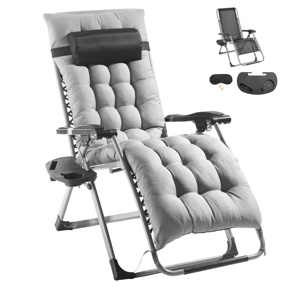 Docred Heavy Duty 5-position Folding Chaise Lounge Chair For Outdoor Sunbathing, Pool, Beach & Patio – Gray