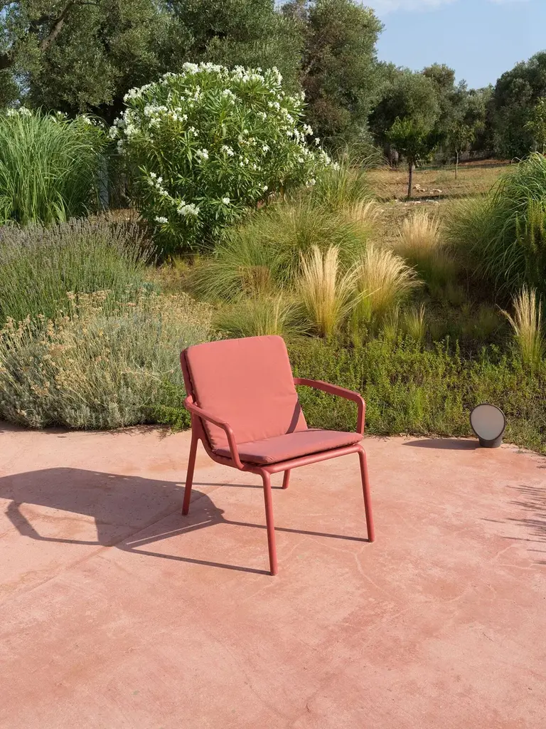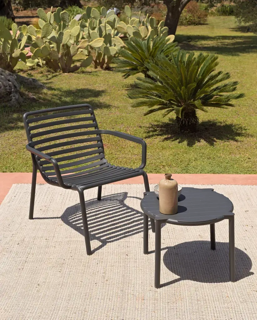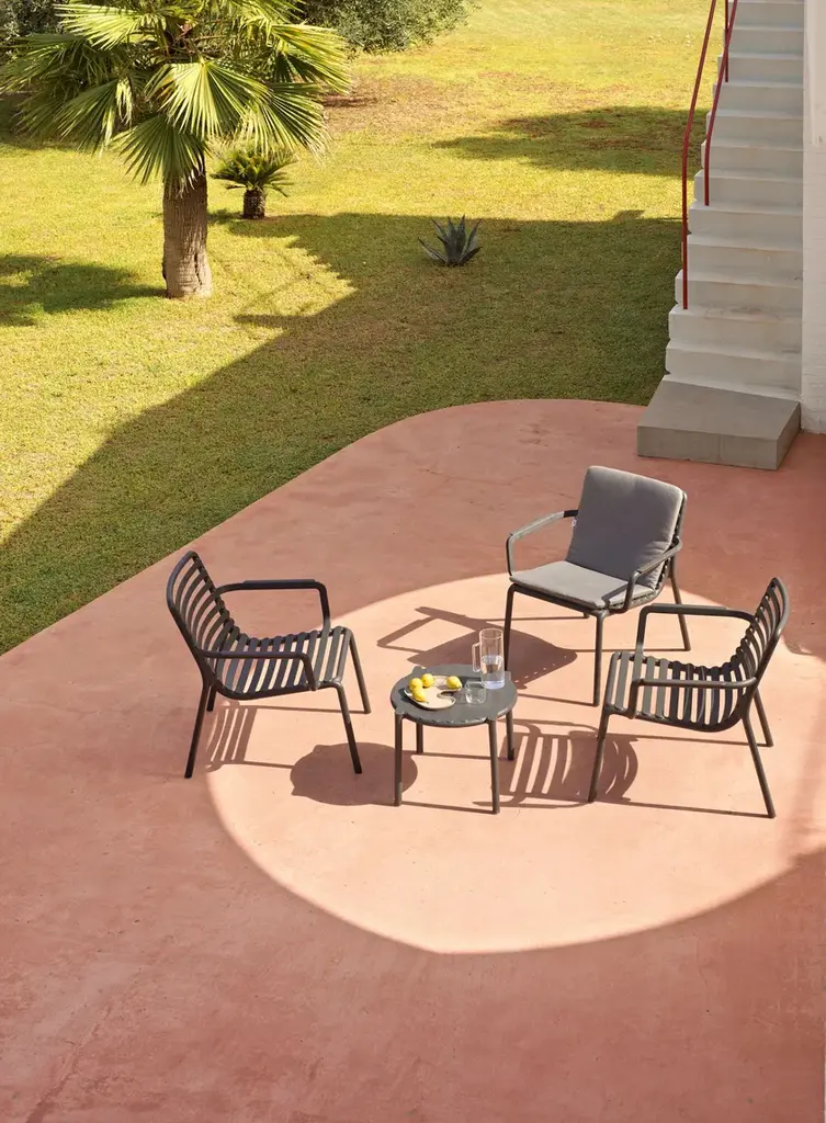 Doga Relax is a relaxing and large armchair for outdoor use made of fiberglass resin characterized by an open design, a play of solids and voids marked by a sequence of horizontal slats. Stackable, easily sanitized and recyclable.Doga Relax belongs to the extensive Doga outdoor furniture collection, featuring an interplay of open and closed spaces punctuated by a sequence of horizontal slats. It includes chairs with and without armrests, a lounge chair and a monobloc low table made of fiberglass resin.The colours presented are different and new: eternally sophisticated bianco, antracite and tabacco for more industrial and urban settings; warm shades of cappuccino for blending in with historical contexts, and marsala for those who want a touch of original eccentricity. Ever-present green shades such as menta, pera and agave are available for more natural environments.Doga is an outdoor furniture collection consisting of chairs with and without armrests, a lounge chair and a monobloc low table made of fiberglass resin, all inspired by a slatted design, given a contemporary twist.