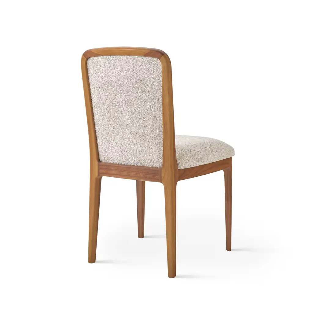Subtle curves and clean lines trace the harmonious silhouette of this sophisticated chair. Fashioned of Canaletto walnut and offered in a delicate finish ("Havana"), the frame is enlivened by the extra-soft beige boucle fabric covering both the backrest and richly cushioned seat. Please explore available finishing variants in the Artemest catalog.