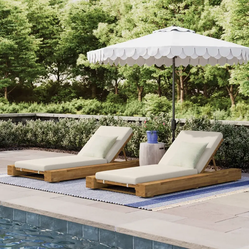 Anchor your outdoor space with a solid foundation that also brings unparalleled comfort to your home. Our chaise lounge set with cushions brings a homey yet sophisticated style to any backyard or patio space. With water-resistant cushions and an acacia wood frame, these lounge chairs offer you refined seating with adjustable function and a breathable slat design. This chaise lounge set features a sturdy, box-like design that brings a breezy atmosphere to your outdoor space, making it easy for you to enjoy the allure of summer to its fullest.