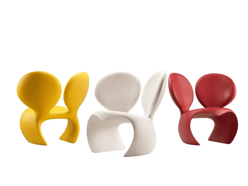 Originally created in 1988, Don’t F**k With The Mouse it’s one of Ron Arad’s most iconic armchair. As a limited edition product it has undergone numerous metamorphoses over the years – finally it has become an industrial product proposed by Qeeboo in the version for outdoor spaces in rotational moulding recyclable polyethylene.