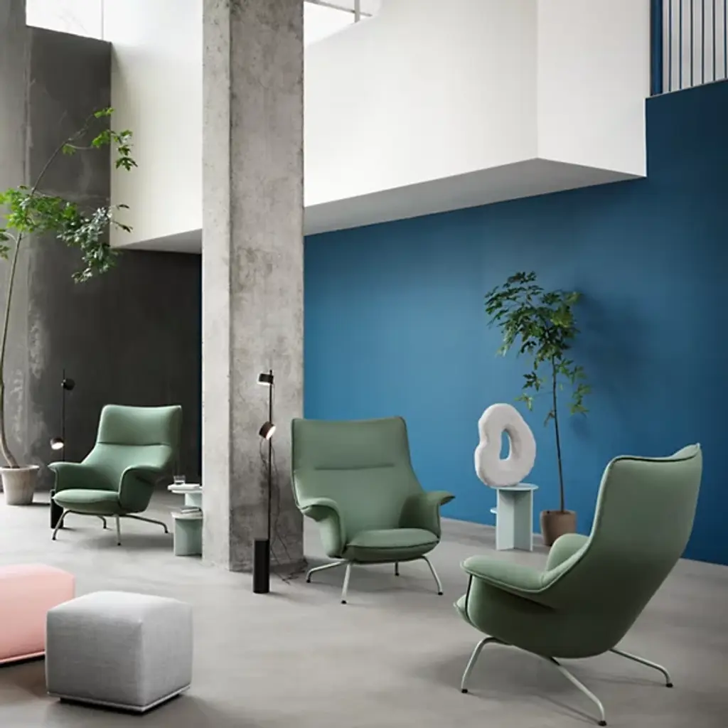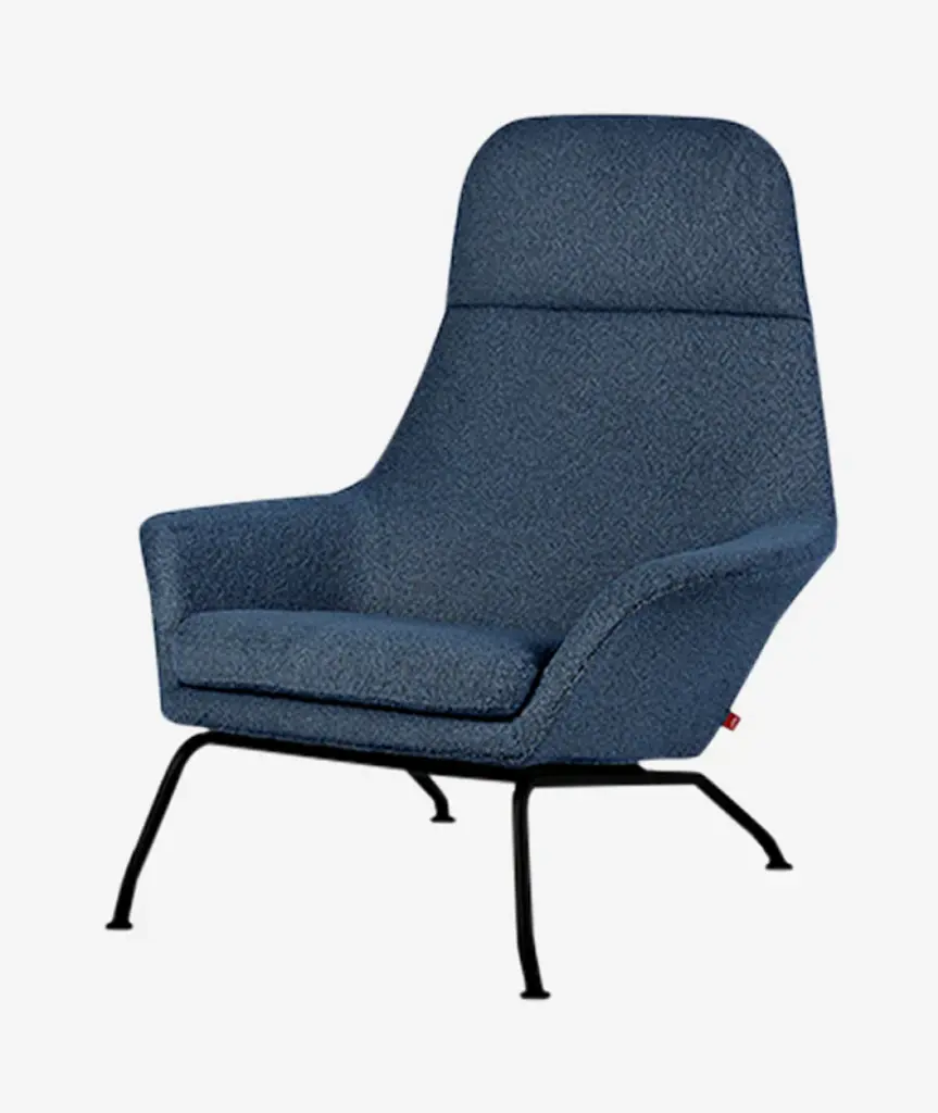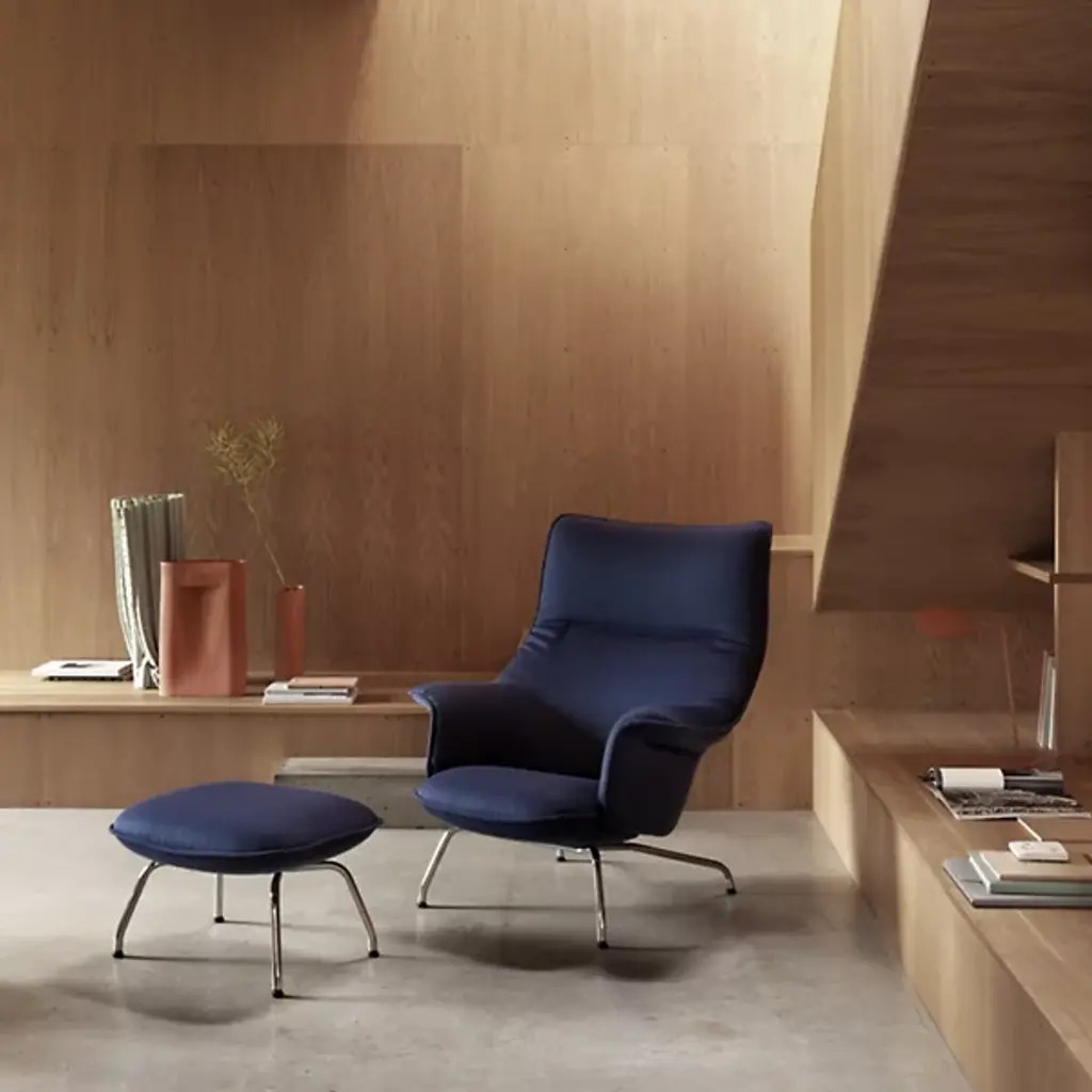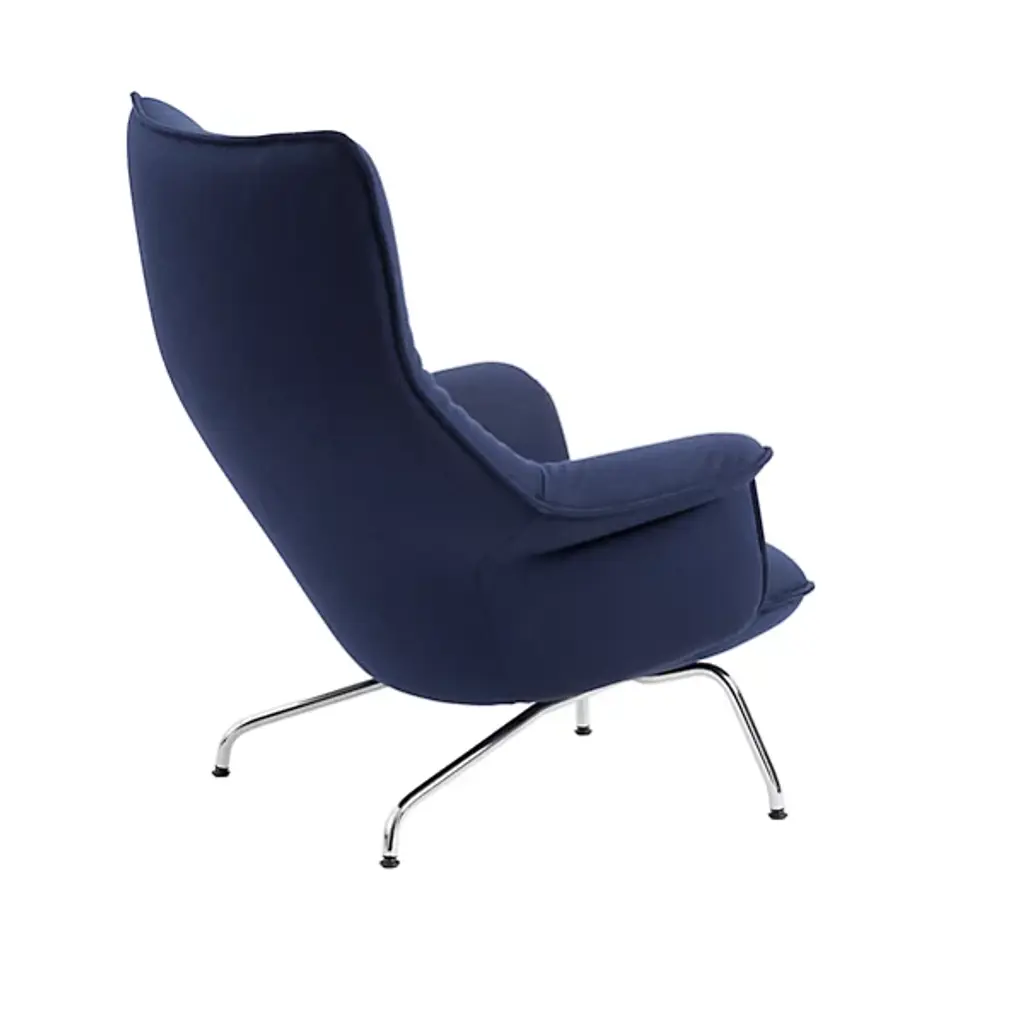 Clever, comfortable, and captivating. The Doze Lounge Chair from Muuto fuses modern Scandinavian design with contemporary style to create an unforgettable character. An Anderson + Voll design resting atop slick plastic glides that offer easy repositioning, four angular metal legs converge beneath a soft seat and an angular, curving back that features foam fill further enhanced by a soft, well-upholstered surface from Kvadrat and Rohleder. The seat angles back slightly for more casual comfort, while attached armrests offer an enveloping appeal.