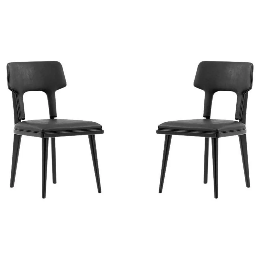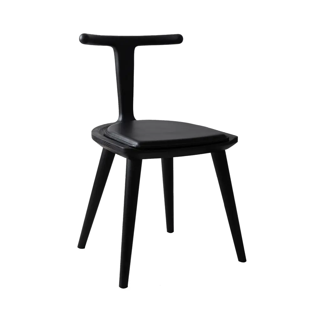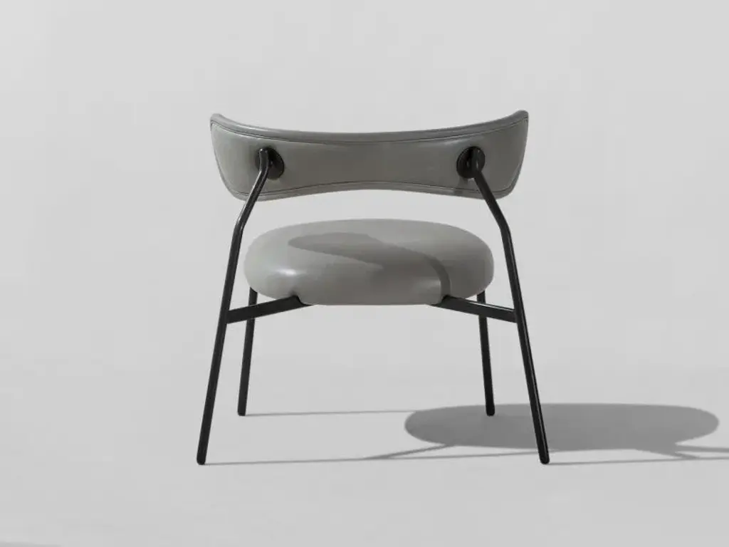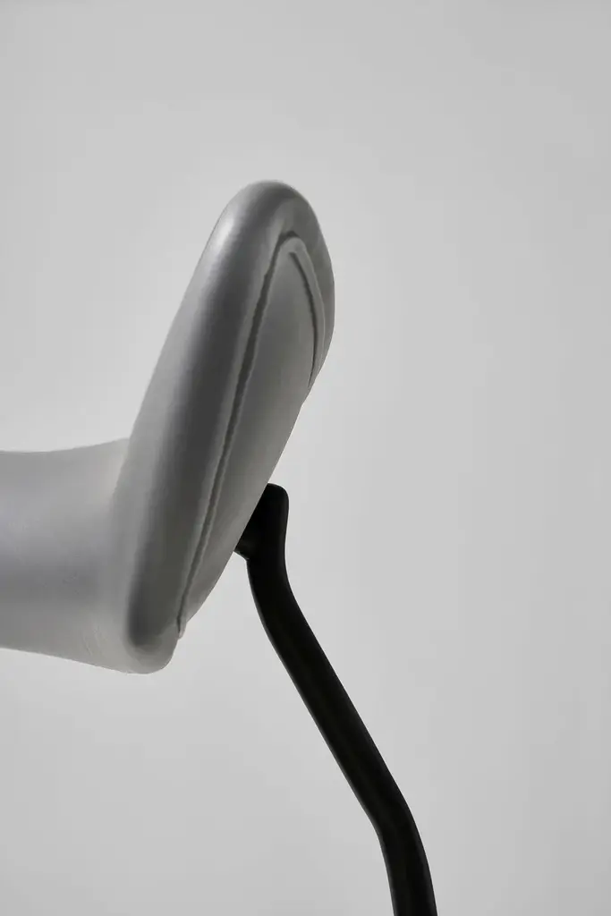 The Dragonfly Lounge Chair emphasizes its distinct shape with a strong, sharp, and wide backrest. Its frame is built with a black steel tube, while the seat comes in either a leather or fabric finish.