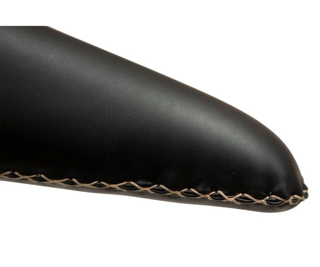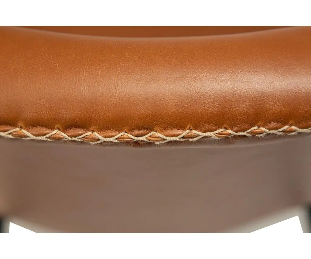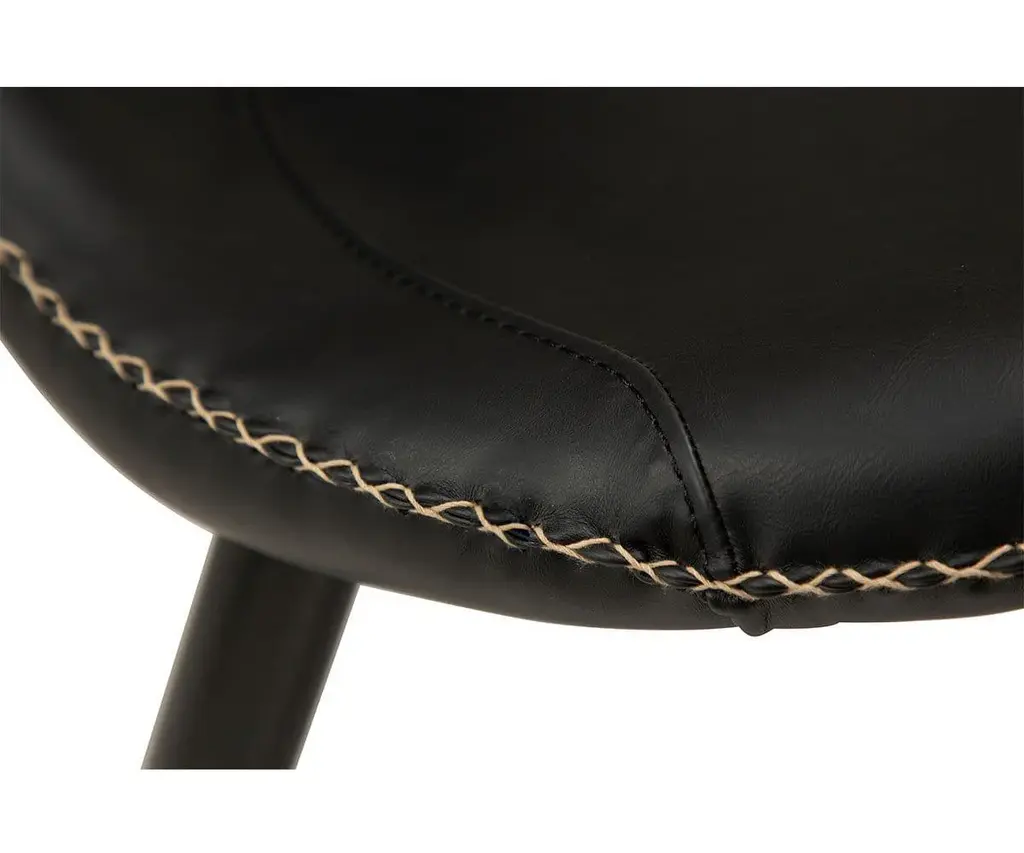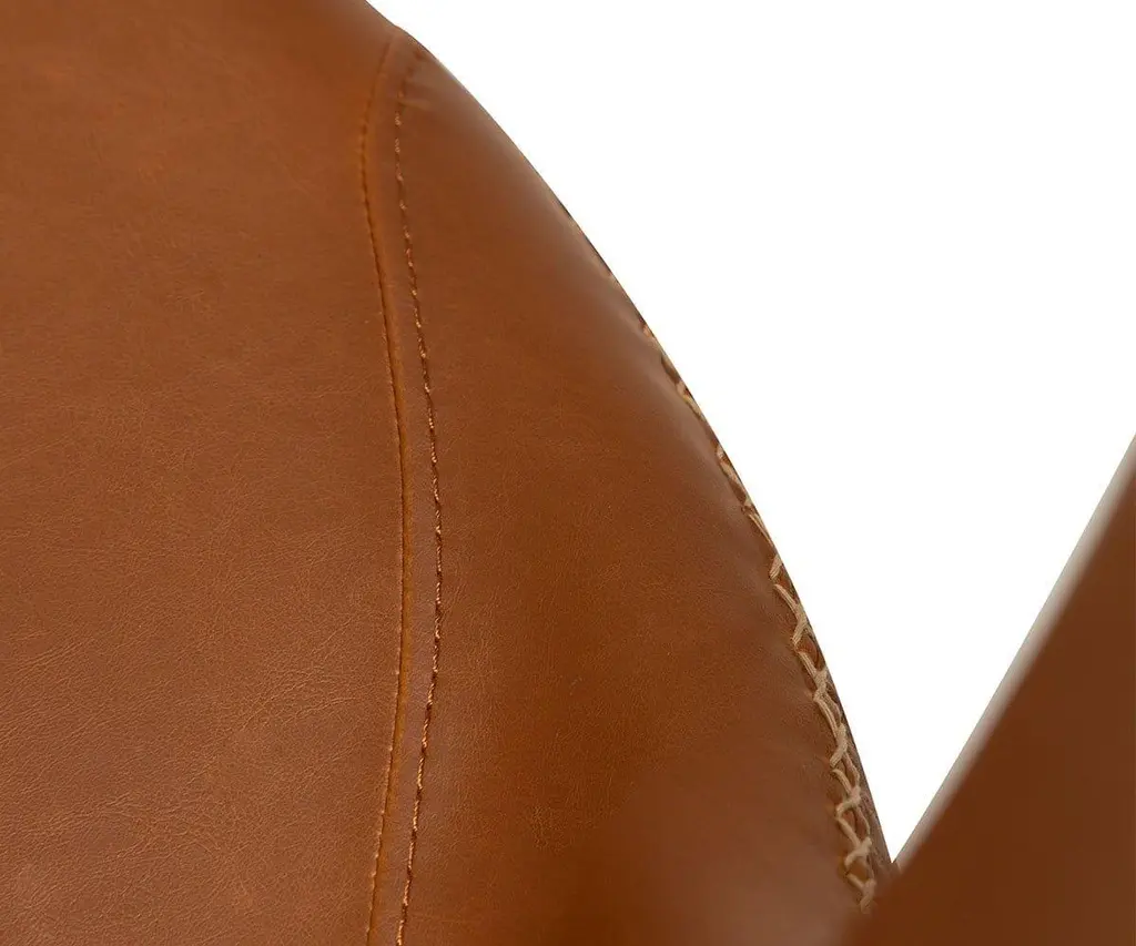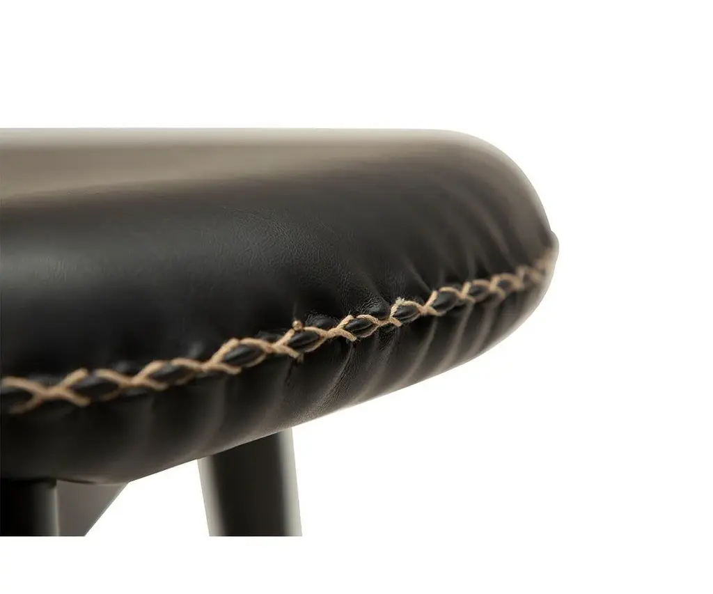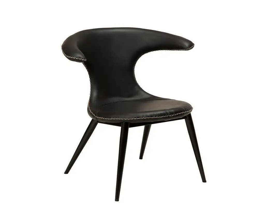 The Drake Lounge Chair is upholstered in smooth faux leather and accented with contrasting stitching that speaks to stylish rustic influences and modern Danish design. Featuring a wide, comfortable seat, this chair is supported by a sturdy industrial frame that features a matte black powder-coated finish and legs that taper to subtly exaggerated points. The Drake Lounge Chair is an ideal accent chair for any space, as it brings true rustic industrial design to your home.