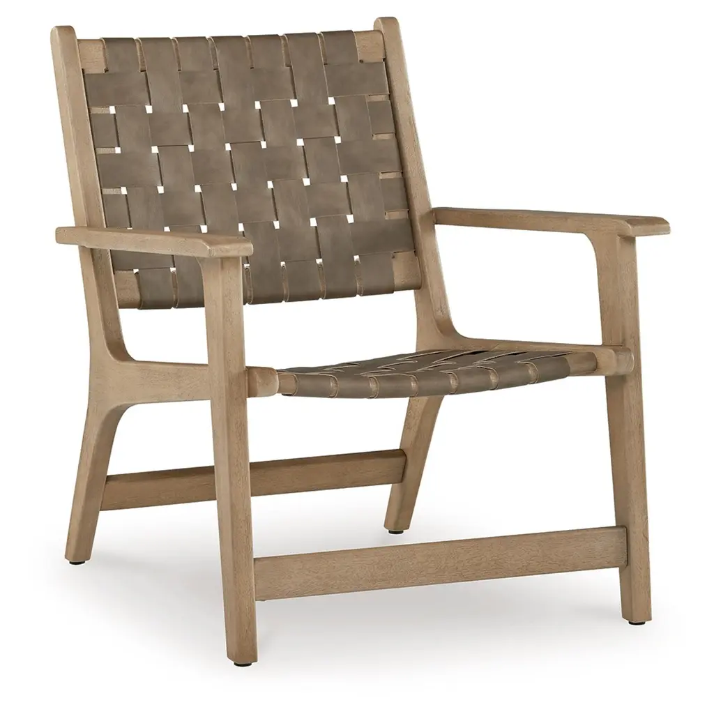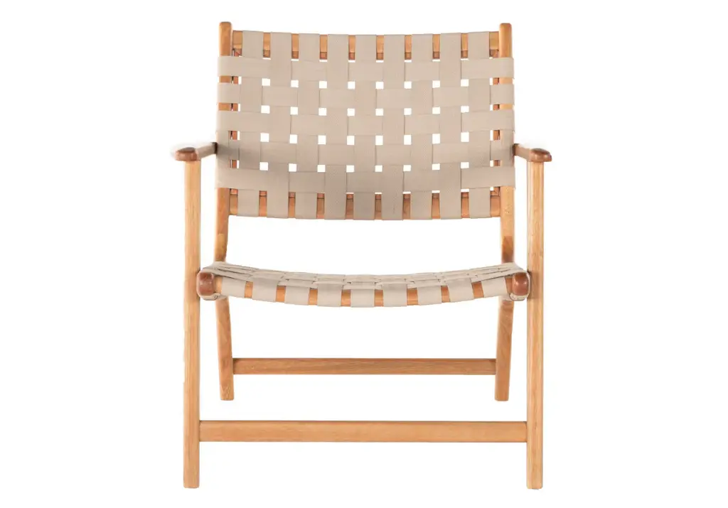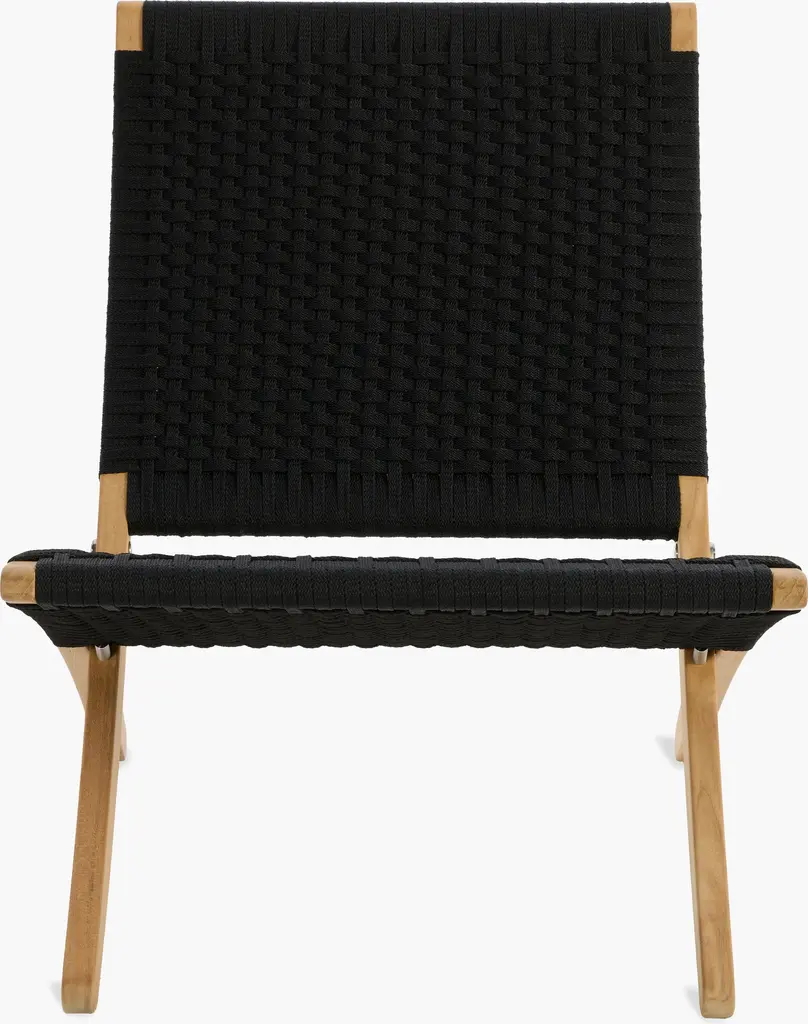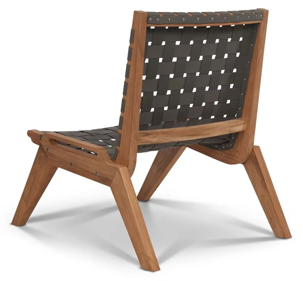 Inspired by midcentury Danish designs, this accent chair makes a stylish addition to your favorite outdoor space with its boldly angled teak frame and woven seat made using straps of gray Sunbrella--an easy-to-clean, solution-dyed acrylic fabric that is colorfast, mold-resistant, and soil-resistant.