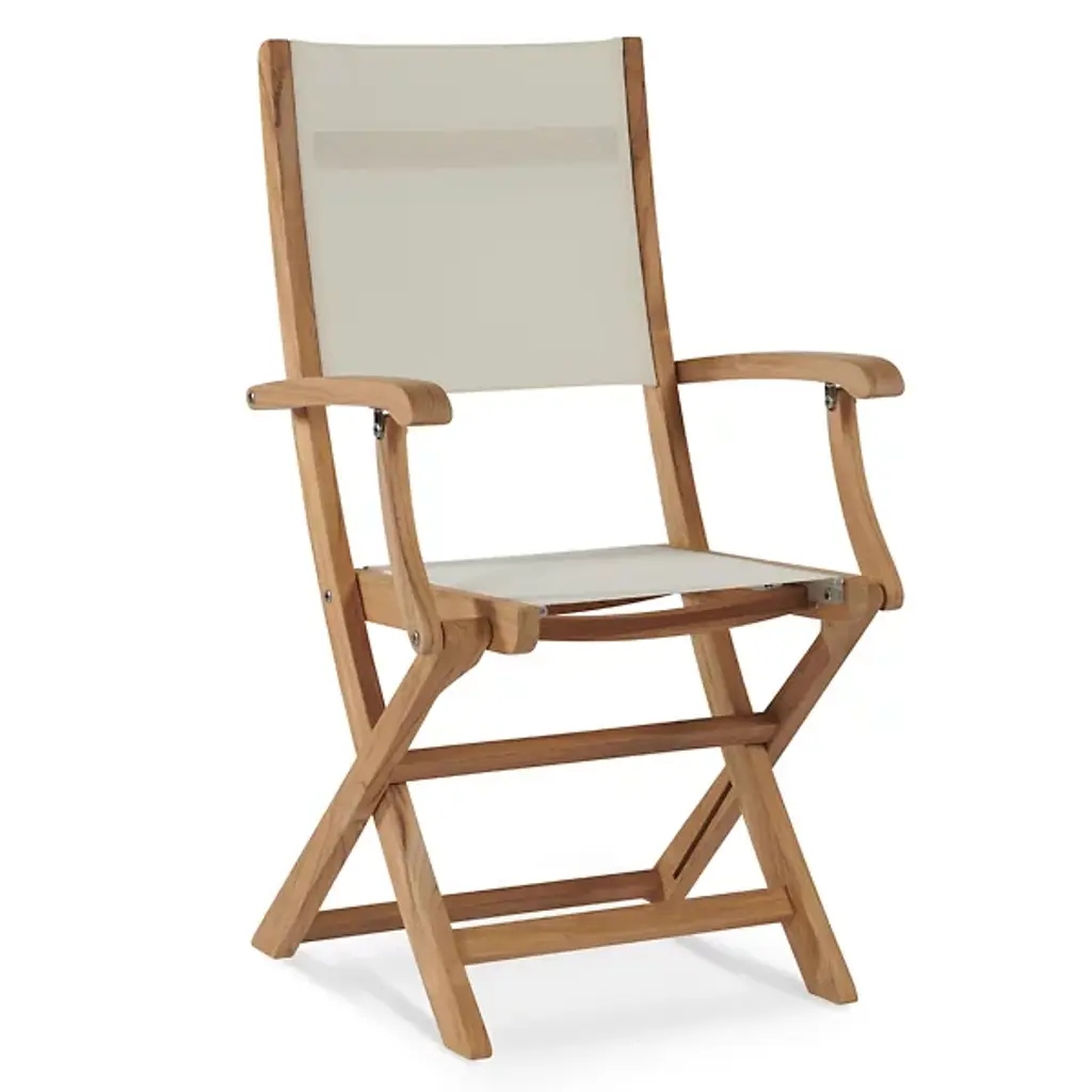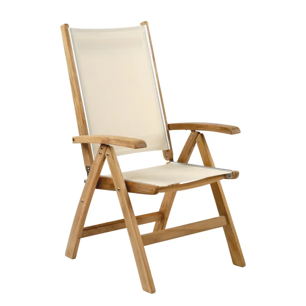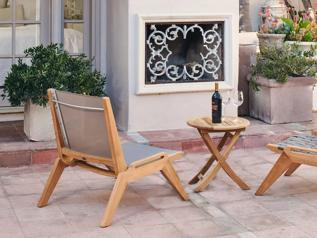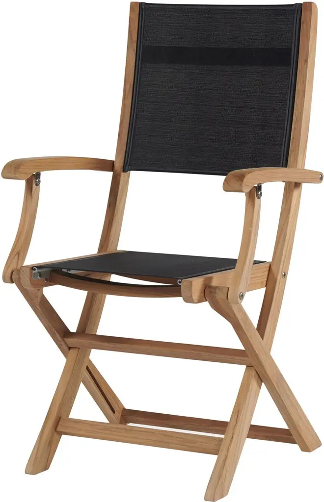 Inspired by midcentury Danish designs, this accent chair makes a stylish addition to your favorite outdoor space with its boldly angled teak frame and Textilene seat and back. Textilene is a waterproof mesh material that contours to the curves of your body while providing excellent support.