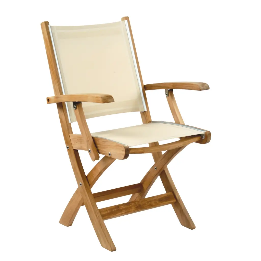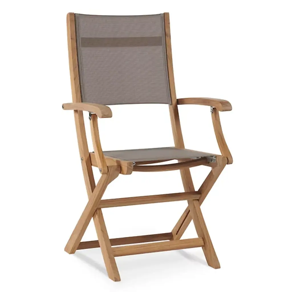 Draper Outdoor Teak Sling Accent Chair, Taupe Textilene