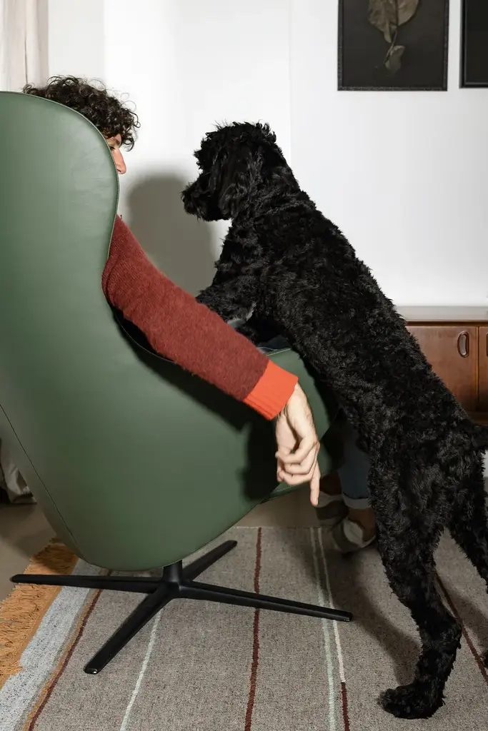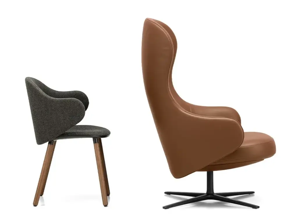 When an idea is a good one, it naturally tends to evolve into new shapes. This also happened with the Dua project by Läufer & Keichel: starting with a small upholstered chair consisting of two curved and elliptical surfaces, hence the name Dua, a rich and extensive family of products was created, which now also includes a reclining armchair and a lounge chair. The seat cushion, thicker than before, is embraced by a wide and inviting backrest, which is high for the Dua Relax version. Upholstered in fabric or leather, Dua Relax are comfortable, elegant and visually light thanks to the slimline metal trestle base. Dua Relax is reclining thanks to a self-weighing synchronized mechanism.Frame finish: polished aluminum, "Exclusive" painted aluminumUpholstery finish: in fabric, leather, synthetic leatherThe Berlin-based studio Läufer & Keichel has created a chair and an armchair for Kristalia with soft, embracing lines. The name recalls the number two, which recurs throughout the design project starting with the two elliptical surfaces of the seat and backrest, which sensually revolves around the seat. Available with a slide-frame base or with four solid wood legs, the chair and armchair can be upholstered with the fabrics and leather in the catalogue, with the option of different upholstery for the seat and backrest to create contrasting or matching combinations.Dua also comes in a stool version with a slide-frame base.
