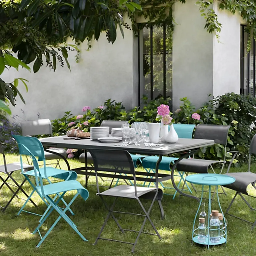 A surprising accent (with equally surprising comfort) for outdoor lounging areas. The Dune Premium Armchair - Set of 2 by Fermob was designed by Pascal Mourgue to be a modern take on the Bistro Chair; this you can see in the sturdiness, sense of lightness and foldability of the Aluminum frame. But, given Dune's gracious curves and use of Outdoor Technical Fabric, that's where the similarity ends. The fabric is stretched across the frame just taut enough to be strong, supportive and, most importantly, comfortable. The two slender arms offer additional support, as well as curves complementary to those of the back and seat.
