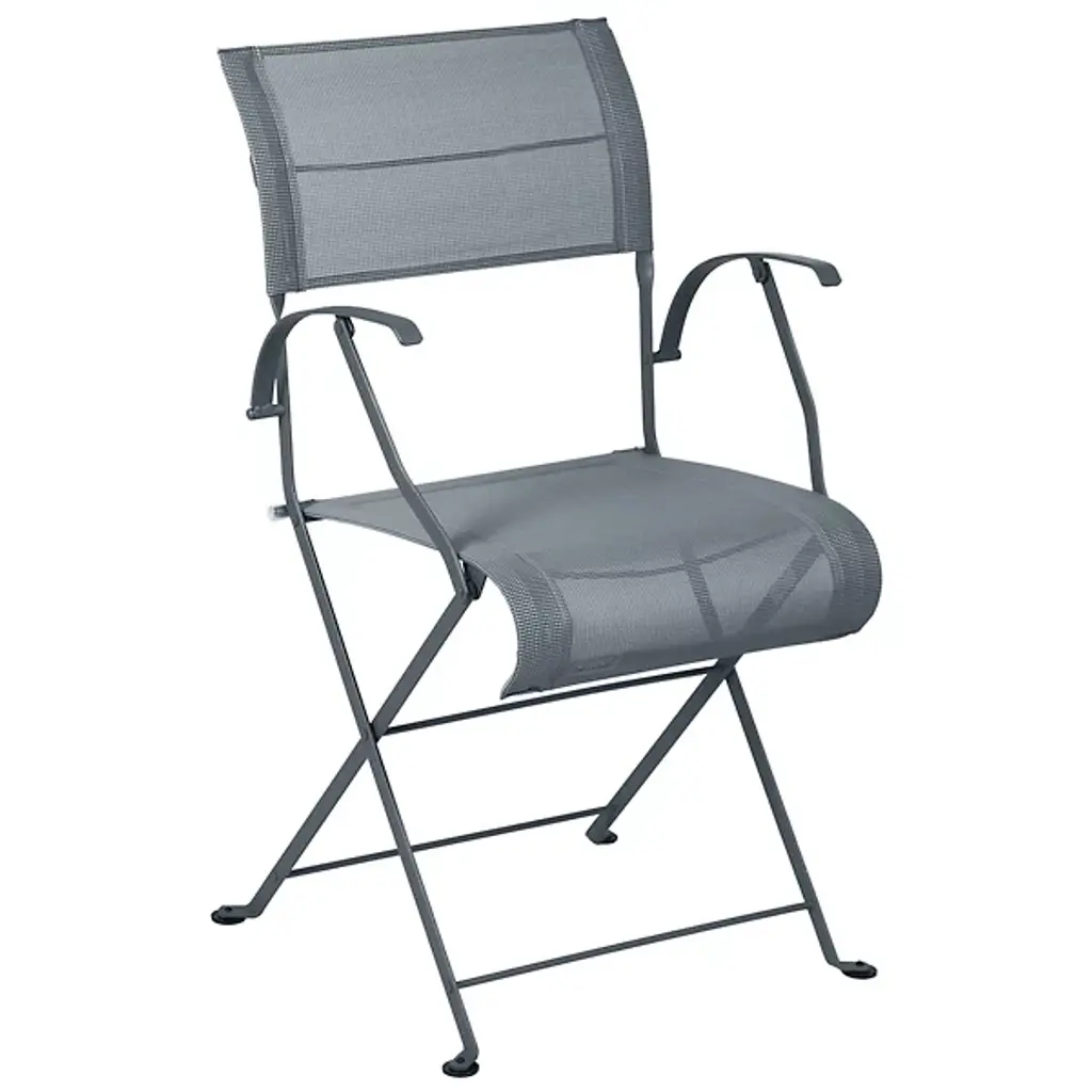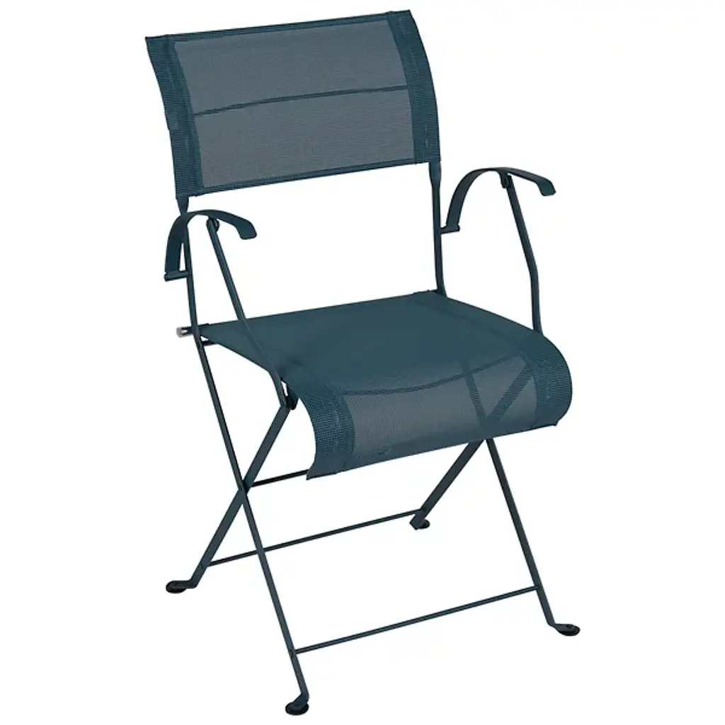 A surprising accent (with equally surprising comfort) for outdoor lounging areas. The Dune Premium Armchair - Set of 2 by Fermob was designed by Pascal Mourgue to be a modern take on the Bistro Chair; this you can see in the sturdiness, sense of lightness and foldability of the Aluminum frame. But, given Dune's gracious curves and use of Outdoor Technical Fabric, that's where the similarity ends. The fabric is stretched across the frame just taut enough to be strong, supportive and, most importantly, comfortable. The two slender arms offer additional support, as well as curves complementary to those of the back and seat.