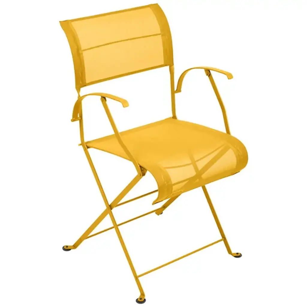 A surprising accent (with equally surprising comfort) for outdoor lounging areas. The Dune Premium Armchair - Set of 2 by Fermob was designed by Pascal Mourgue to be a modern take on the Bistro Chair; this you can see in the sturdiness, sense of lightness and foldability of the Aluminum frame. But, given Dune's gracious curves and use of Outdoor Technical Fabric, that's where the similarity ends. The fabric is stretched across the frame just taut enough to be strong, supportive and, most importantly, comfortable. The two slender arms offer additional support, as well as curves complementary to those of the back and seat.