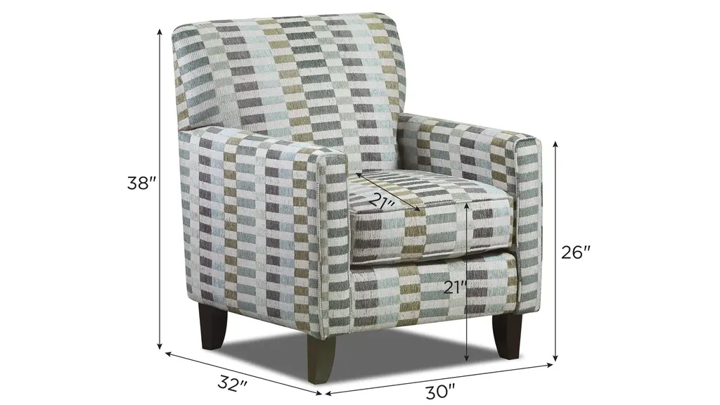 The lively geometric pattern of the Durango Accent Chair coordinates with the interesting array of accent pillows on the Durango sectional for a designer look with an undeniable spirit of ease. Sloped arms, a tight seat back, and slightly splayed legs make this a fun occasional chair and conversation piece for any room.
