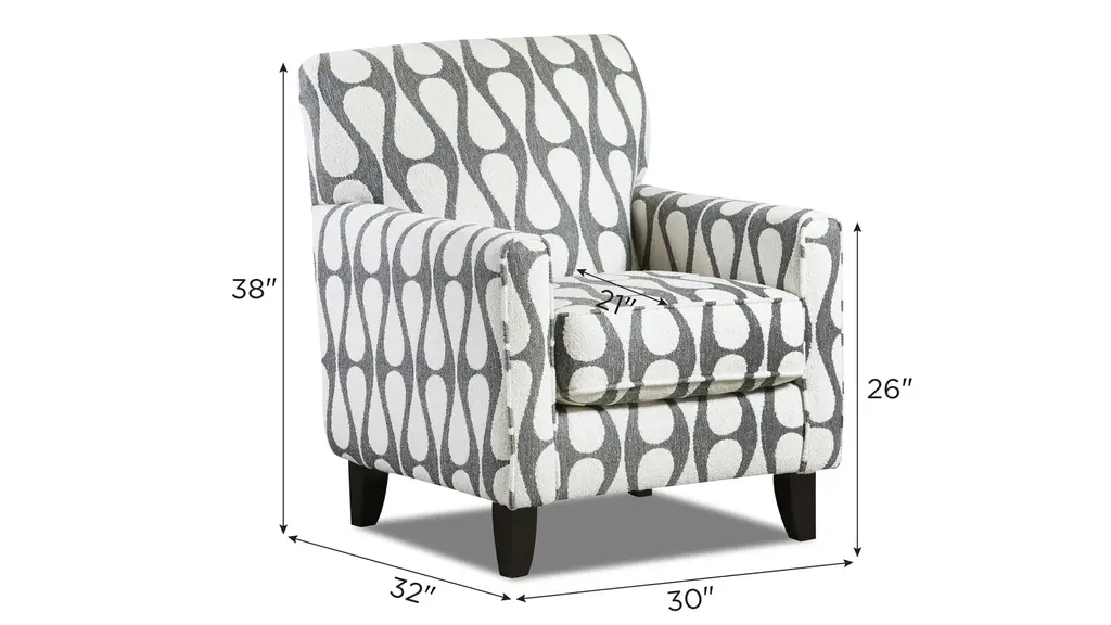 The lively geometric pattern of the Durango Accent Chair coordinates with the interesting array of accent pillows on the Durango sectional for a designer look with an undeniable spirit of ease. Sloped arms, a tight seat back, and slightly splayed legs make this a fun occasional chair and conversation piece for any room.