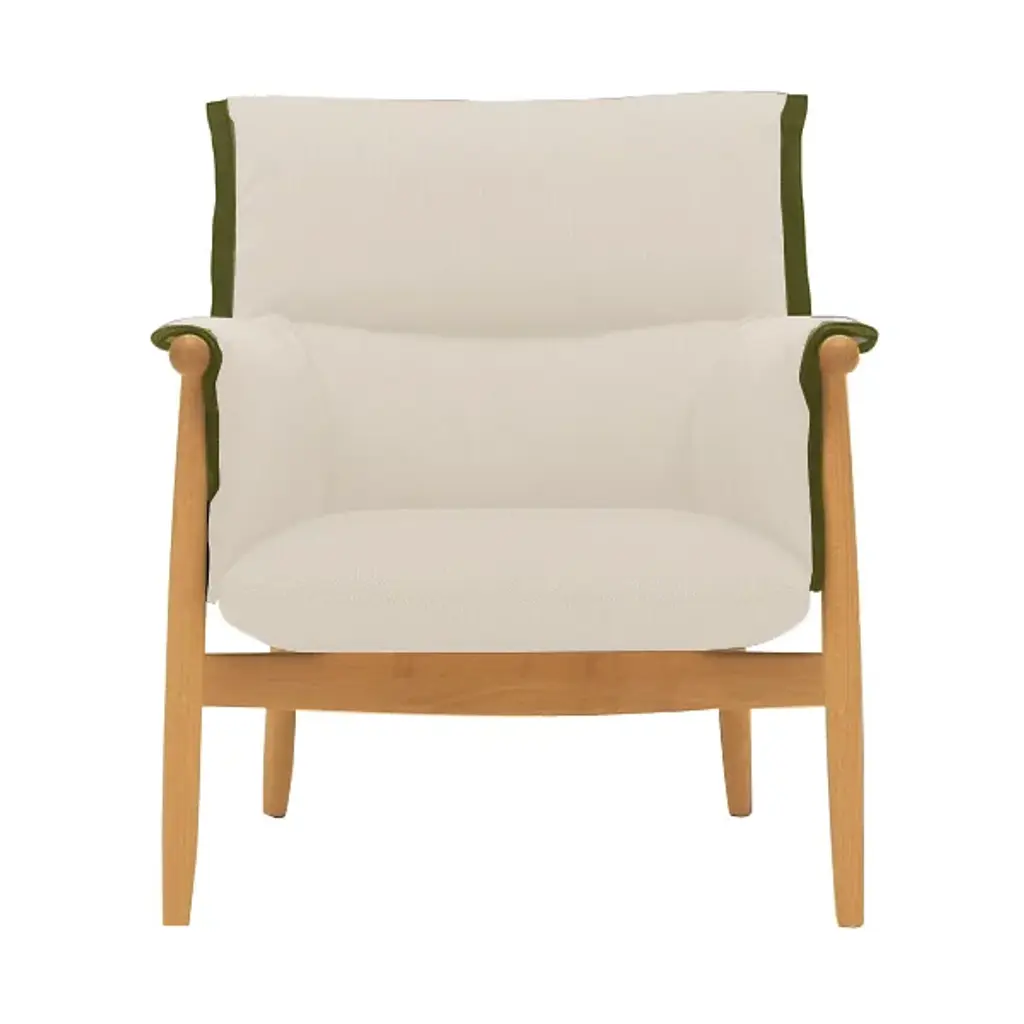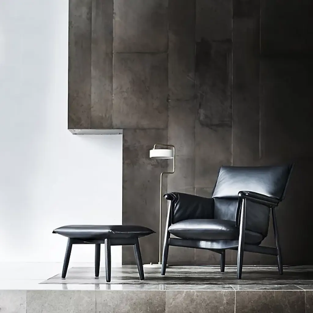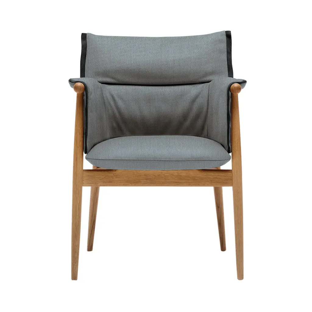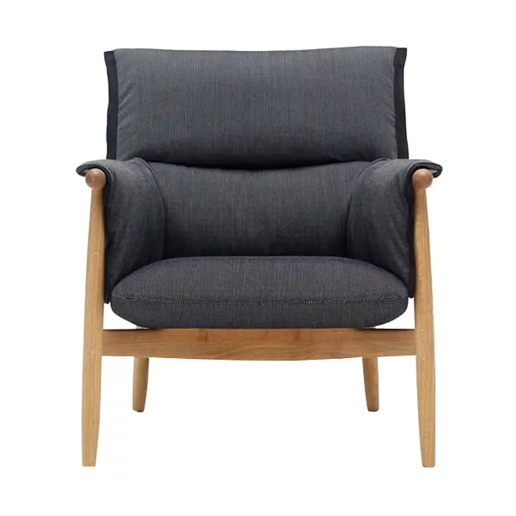 Sink to its warm embrace. The Embrace Lounge Chair from Carl Hansen is an extremely comfortable chair that also has an appealing modern style. The beautiful upholstery is filled with extra padding to make it even softer, and the lowered seat lets you sink into deep relaxation. This material wraps the entire frame and the user so sitting in it genuinely feels like a hug. This frame is made out of top-of-the-line wood, as is the three-piece back, which give this modern product long-lasting durability.
