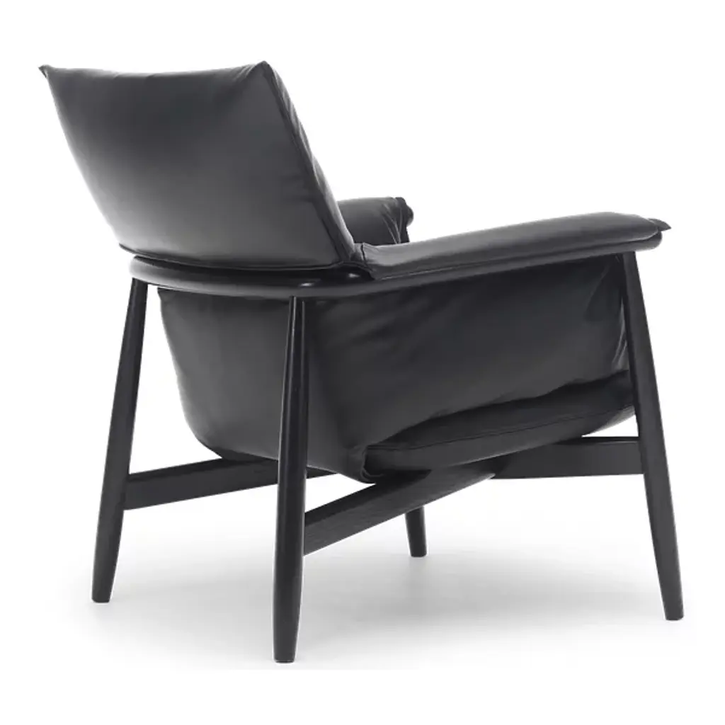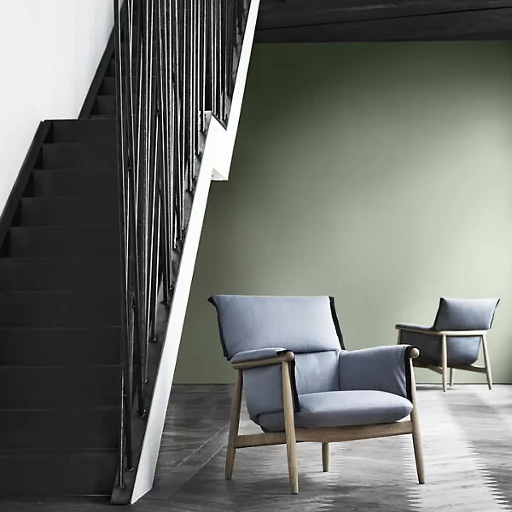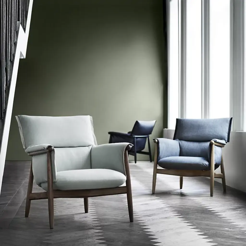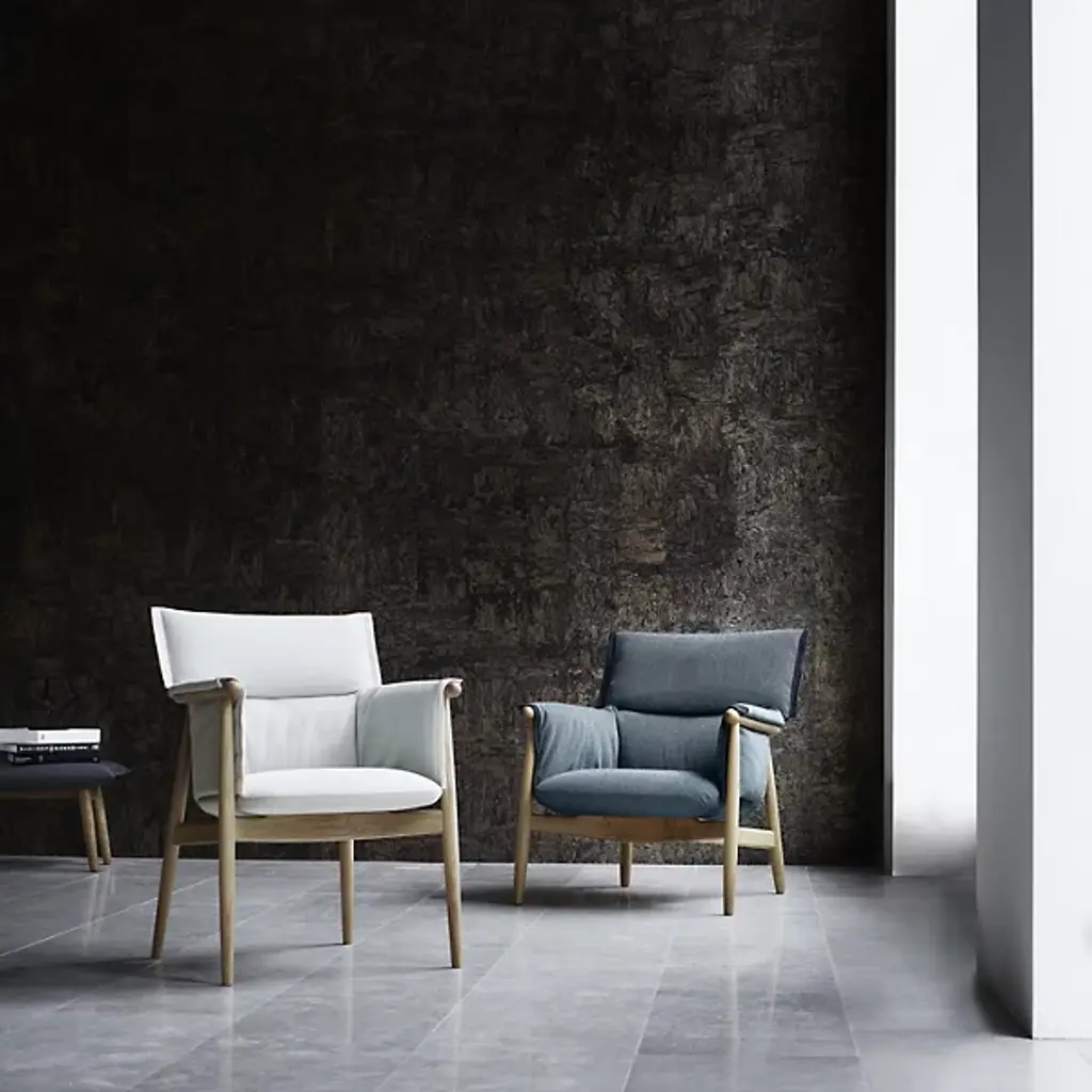 Sink to its warm embrace. The Embrace Lounge Chair from Carl Hansen is an extremely comfortable chair that also has an appealing modern style. The beautiful upholstery is filled with extra padding to make it even softer, and the lowered seat lets you sink into deep relaxation. This material wraps the entire frame and the user so sitting in it genuinely feels like a hug. This frame is made out of top-of-the-line wood, as is the three-piece back, which give this modern product long-lasting durability.