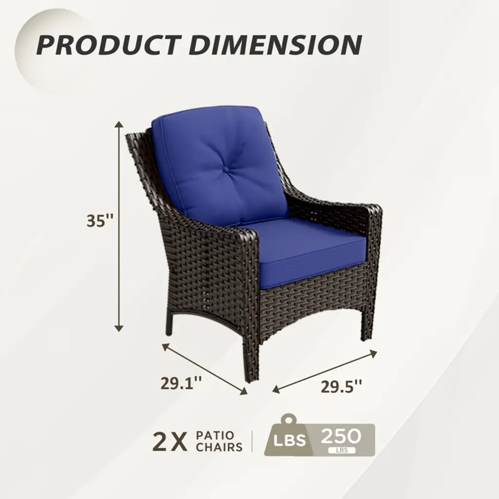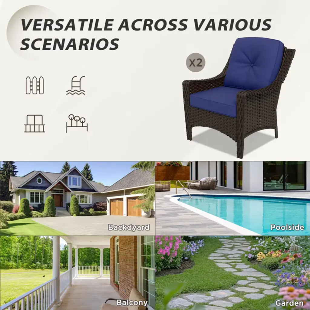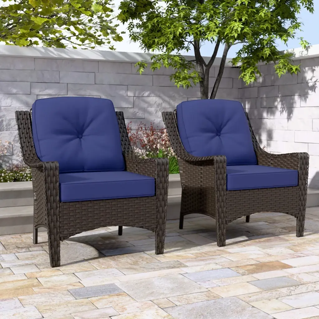 Eagle Peak Azure Bay Set Of 2 Outdoor Wicker Patio Chairs, Weather Resistant Rattan Furniture, Deep Seats, Blue