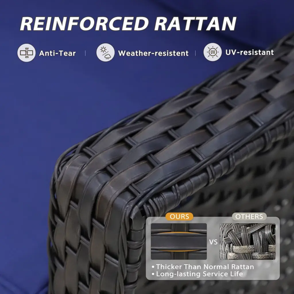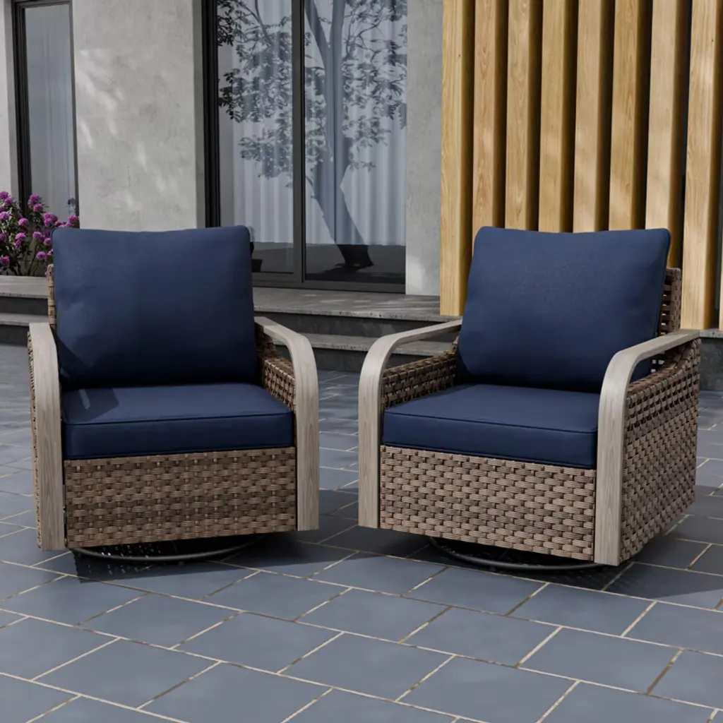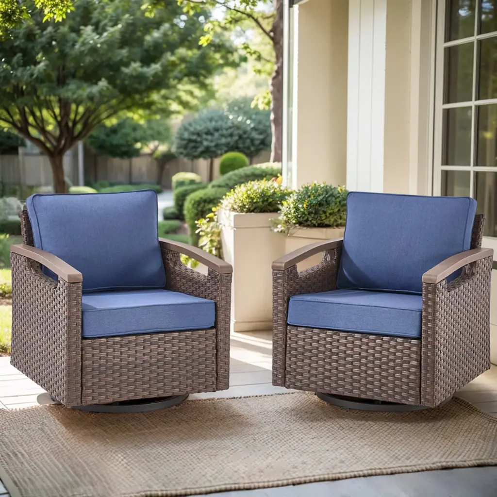 Eagle Peak Azure Bay Set Of 2 Outdoor Wicker Patio Chairs, Weather Resistant Rattan Furniture, Deep Seats, Blue
