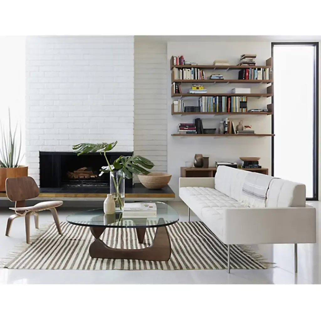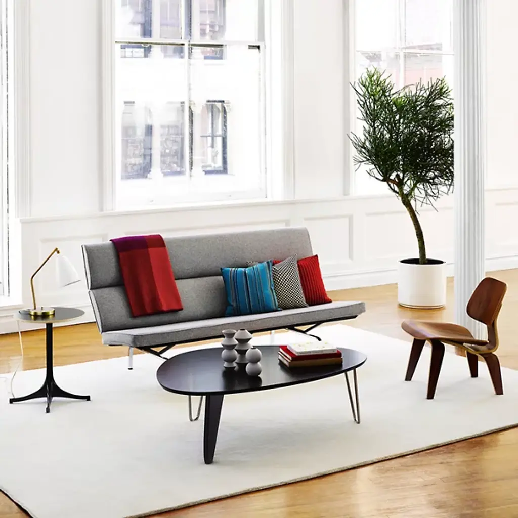 Sit back and relax in the comfort of the Eames Molded Plywood Lounge Chair with Wood Legs from Herman Miller. An iconic 1940s design from the minds of forward-thinking spouse designers Ray and Charles Eames, it earned them a spot at Herman Miller and blends old-school engineering with a timeless construction. Two curved plates of plywood are held at ergonomic angles to form the seat and back, bolted securely to a broad structural rib that connects two sets of single-piece plywood legs that form robust support for the seating.