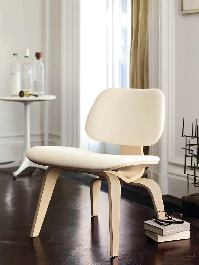 Hailed by Time as the Best Design of the 20th Century, the LCW — or Lounge Chair with wood base (1946) — began as an experiment in Charles and Ray Eameses’ apartment, where they were molding plywood in what they called the “Kazam! Machine.” The machine pressed thin sheets of wood veneer against a heated membrane that was inflated by a bicycle pump. From these humble beginnings came what would become one of the world’s most widely recognized and highly coveted chairs. Molded magnificence. Low-slung, and with an expertly crafted molded seat and back (no more bike pumps needed), the LCW cradles you in a comfortable position; rubber shock mounts between the back, seat, and frame buffer against any jarring movements. This original is an authentic product of Herman Miller, Inc. Eames is a licensed trademark of Herman Miller.