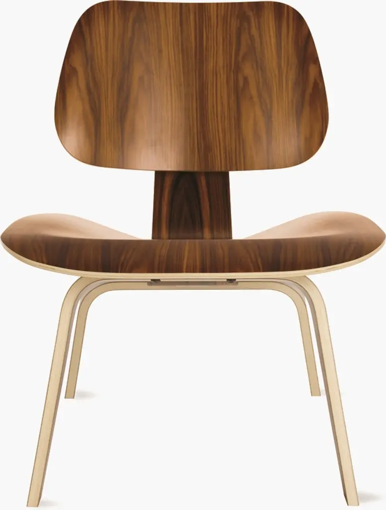 Hailed by Time as the Best Design of the 20th Century, the LCW or Lounge Chair with wood base (1946) began as an experiment in Charles and Ray Eameses' apartment, where they were molding plywood in what they called the “Kazam! Machine." The machine pressed thin sheets of wood veneer against a heated membrane that was inflated by a bicycle pump. From these humble beginnings came what would become one of the world's most widely recognized and highly coveted chairs. Molded magnificence. Low-slung, and with an expertly crafted molded seat and back (no more bike pumps needed), the LCW cradles you in a comfortable position; rubber shock mounts between the back, seat, and frame buffer against any jarring movements. This original is an authentic product of Herman Miller, Inc. Eames is a licensed trademark of Herman Miller.