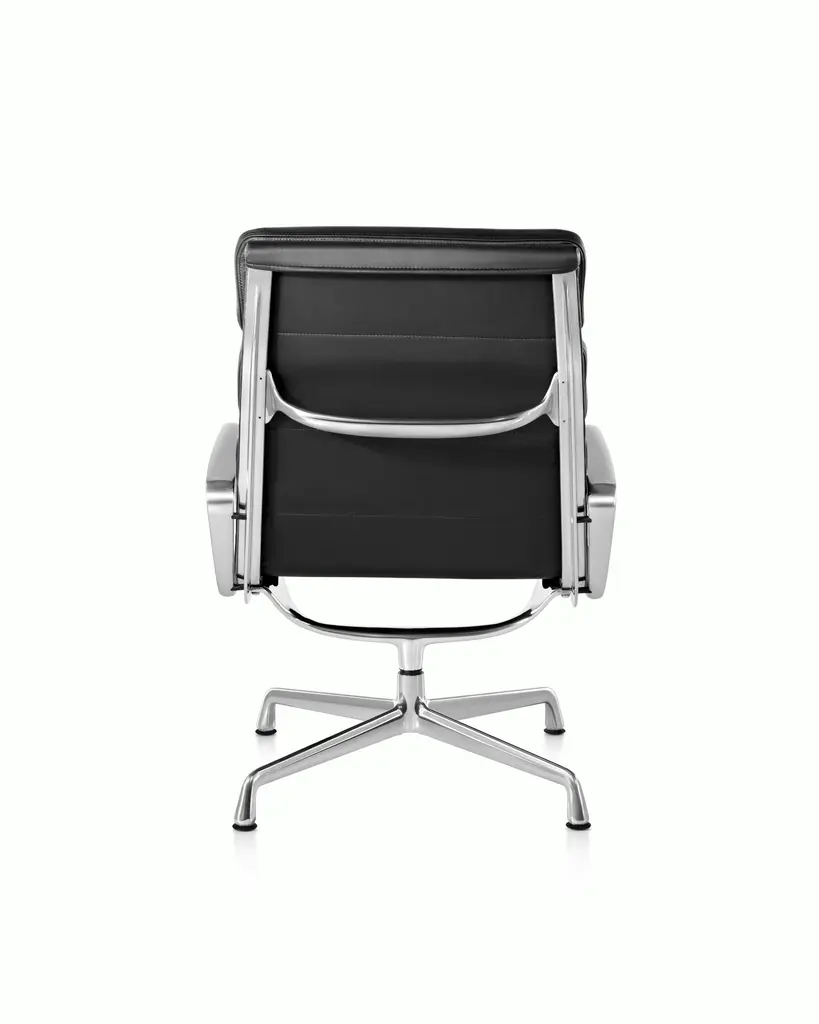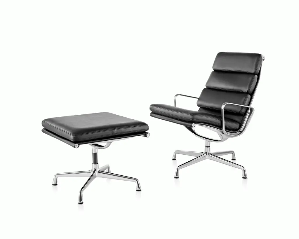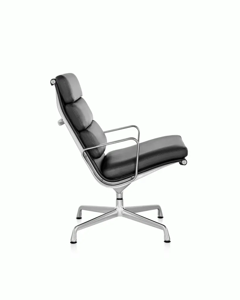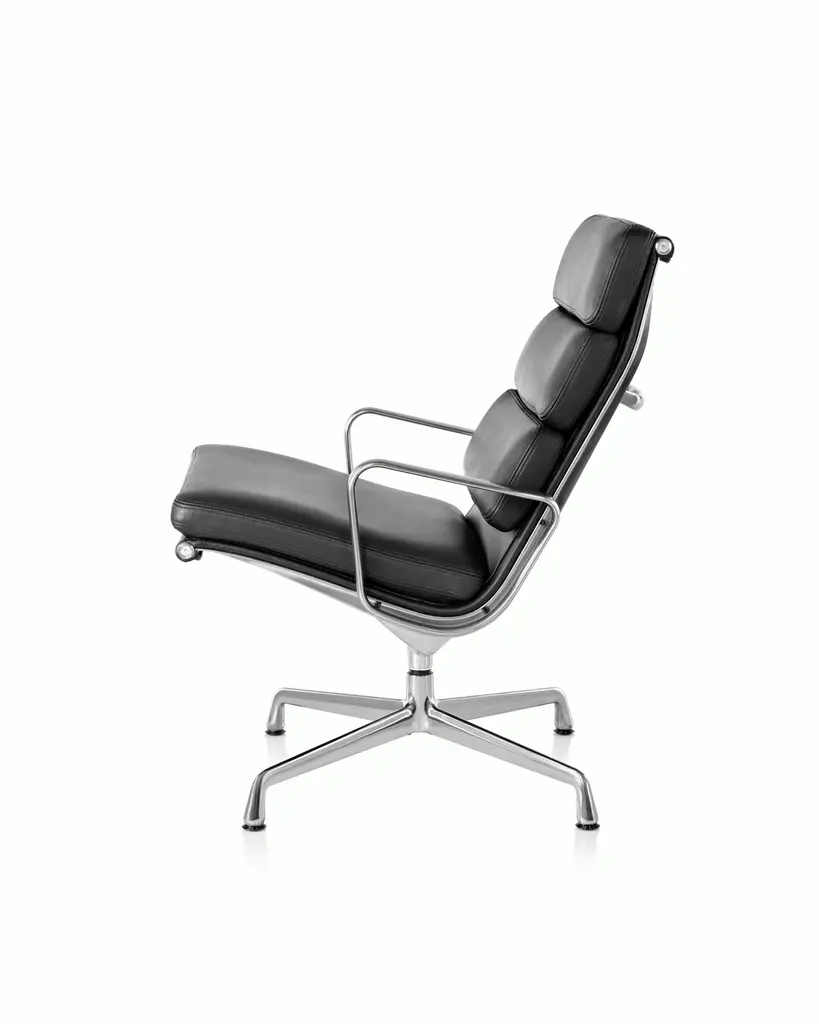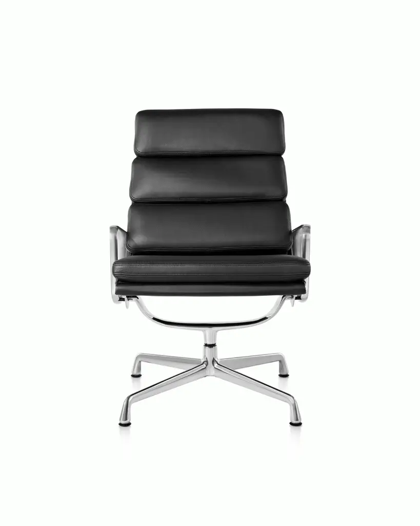 Designed as part of the iconic Aluminum Group, the Eames Soft Pad Lounge Chair has a high back, a relaxed pitch, and comes with its own pillowy headrest.