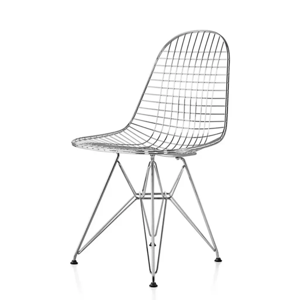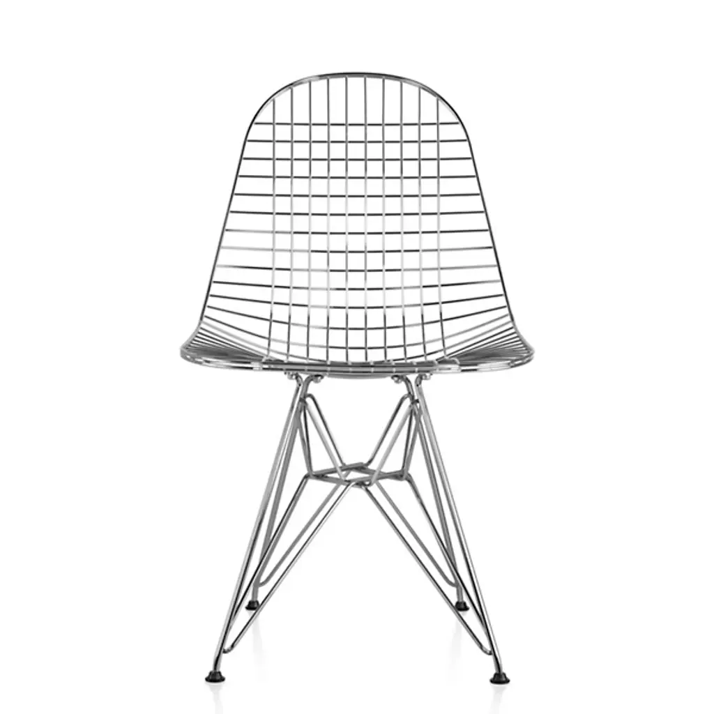 Add an airy modern accent to your living spaces with the clean lines and sweeping design of the Eames Wire Chair from Herman Miller. Unique, intriguing, and inspired by traditional dress forms, this piece was an iteration of the single-piece seats engineered by the husband and wife design team of Charles and Ray Eames. Balanced atop an angular metal base, the wire seat has a deep pocket and a curving, cohesive shape that ensures both the agility and strength characteristic of Eamesean design.