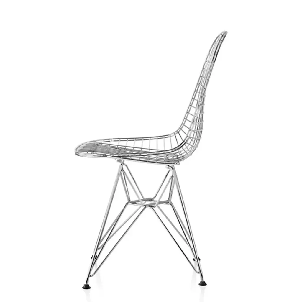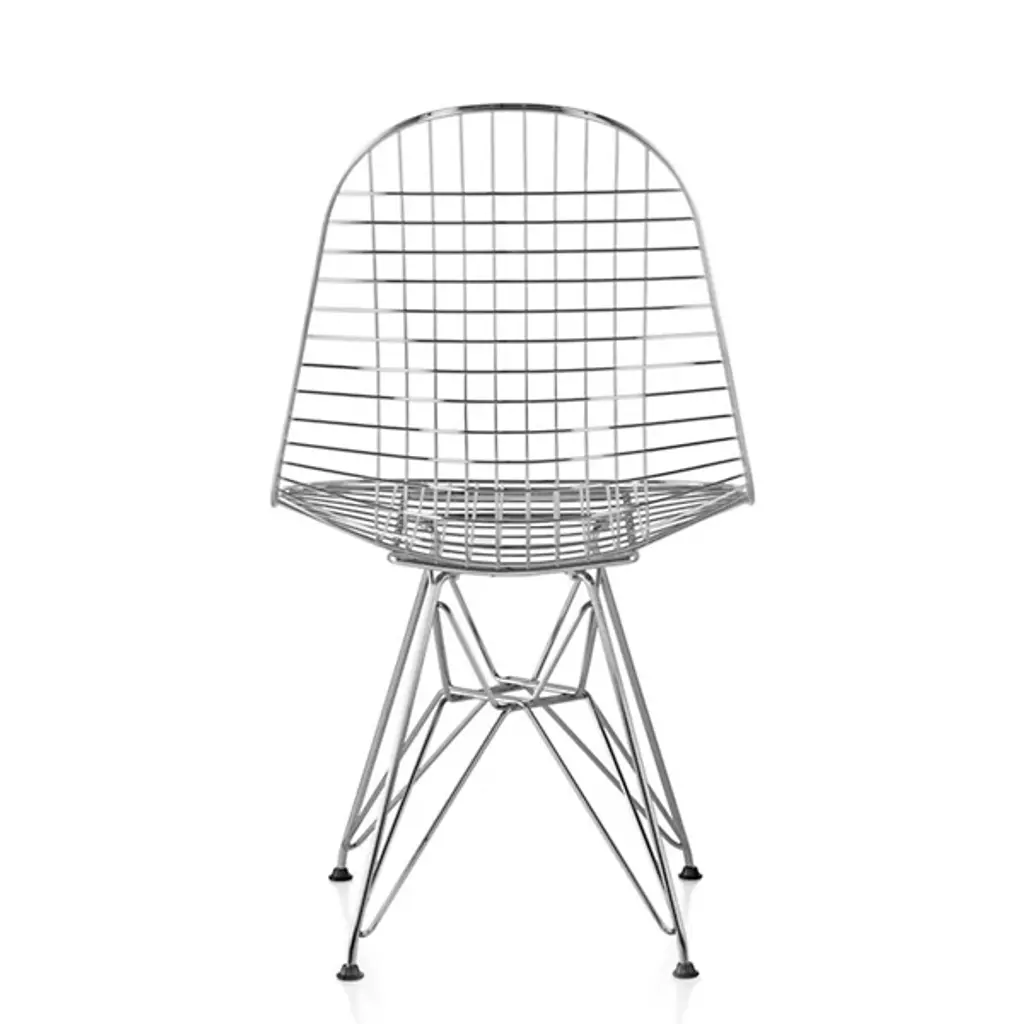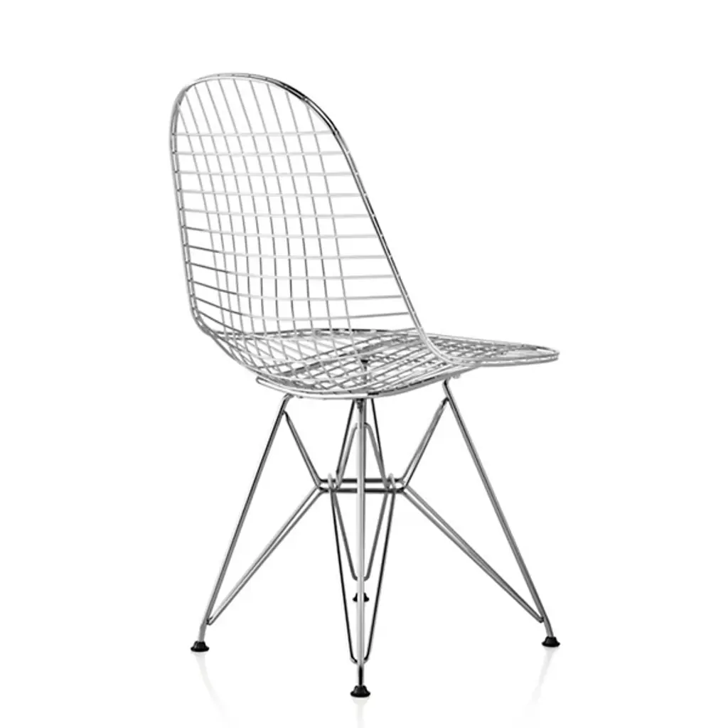 Add an airy modern accent to your living spaces with the clean lines and sweeping design of the Eames Wire Chair from Herman Miller. Unique, intriguing, and inspired by traditional dress forms, this piece was an iteration of the single-piece seats engineered by the husband and wife design team of Charles and Ray Eames. Balanced atop an angular metal base, the wire seat has a deep pocket and a curving, cohesive shape that ensures both the agility and strength characteristic of Eamesean design.