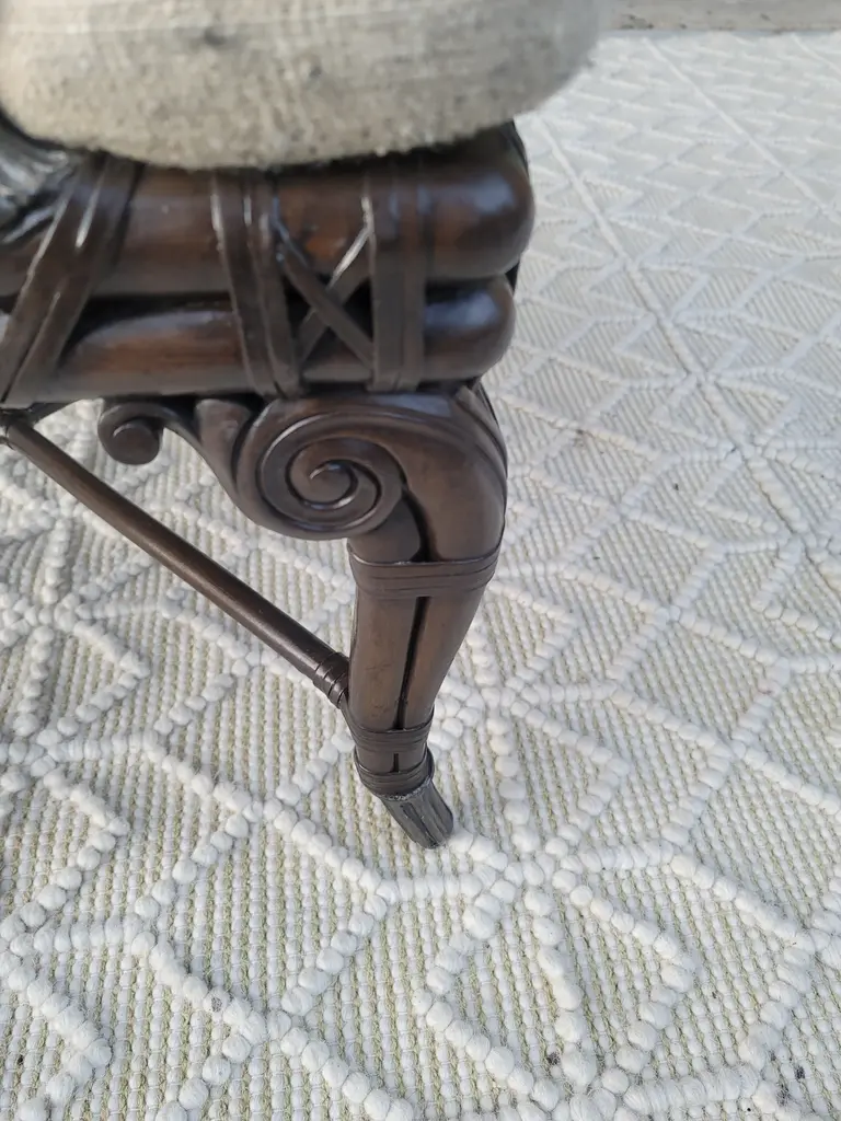 Early 21st Century Regency Style Faux Bamboo Armchairs With Pewter Colored Metal Accents - A Pair