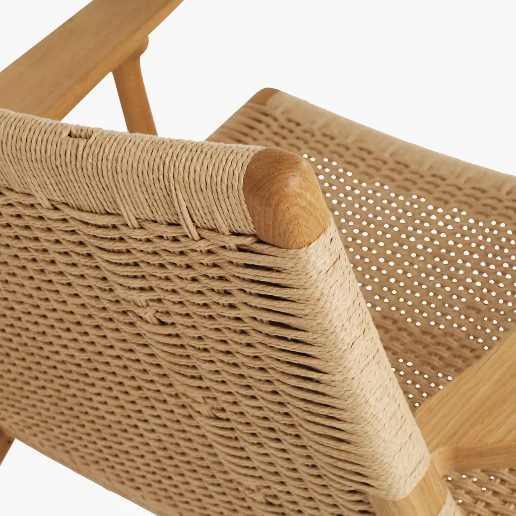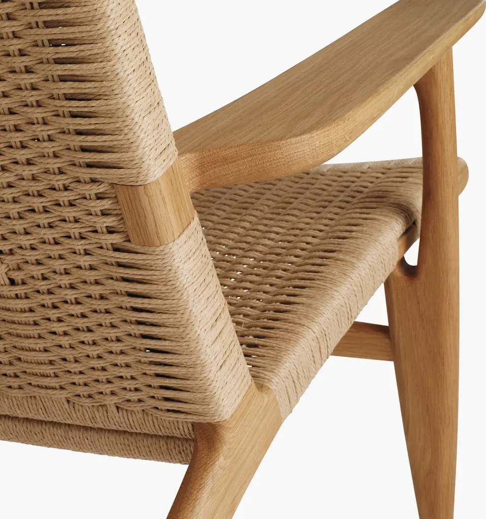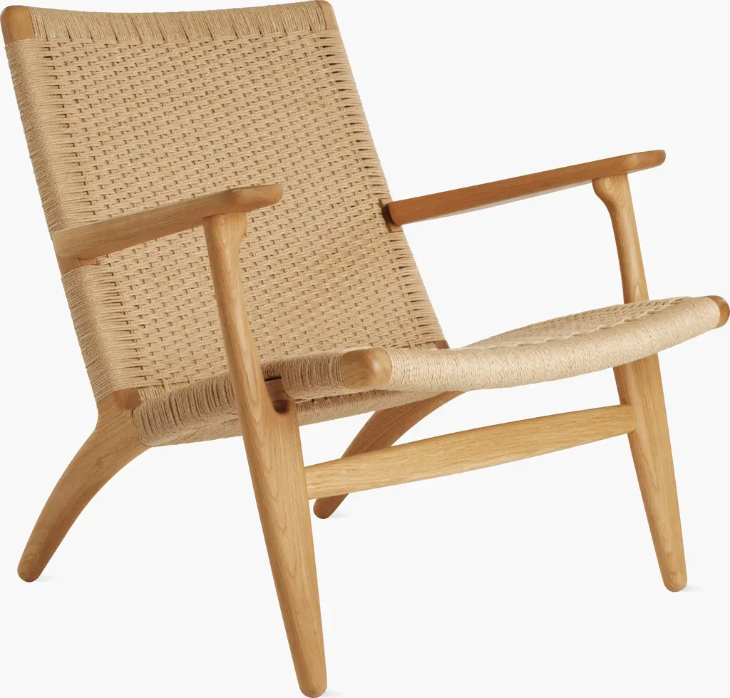Sculptural and balanced, the Easy Chair (1950) is a classic example of the “organic functionalism" for which Hans Wegner is famous. Its natural elegance is exemplified by the 1,300 feet of paper cord that creates the seat and back, which takes a skilled craftsperson eight-plus hours to weave. The solid oak frame has fluid lines and exacting joinery. Relaxed and intuitively ergonomic, the Easy Chair can blend with modern or traditional interiors in nearly any room in the house. Made in Denmark.