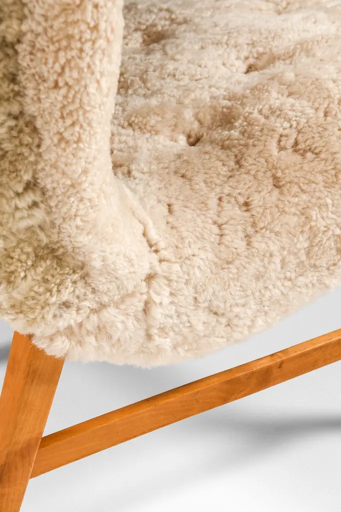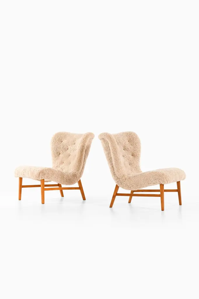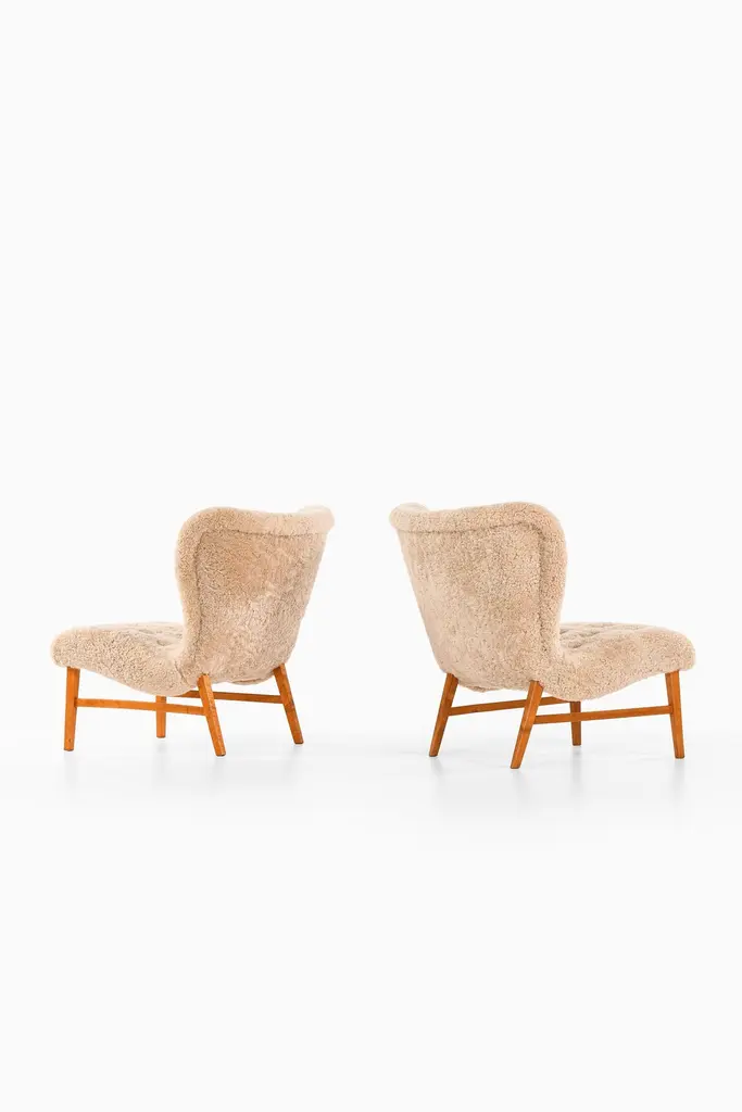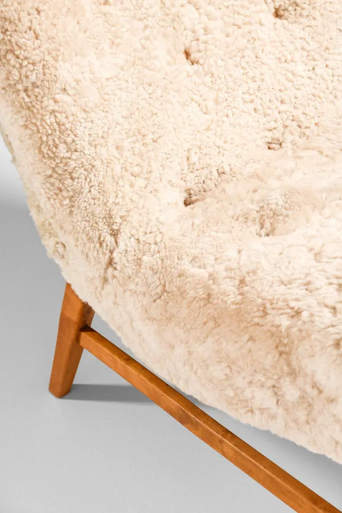 Easy Chairs In Beech & Reupholstered In Sheepskin By Erik Bertil Karlén, 1940's