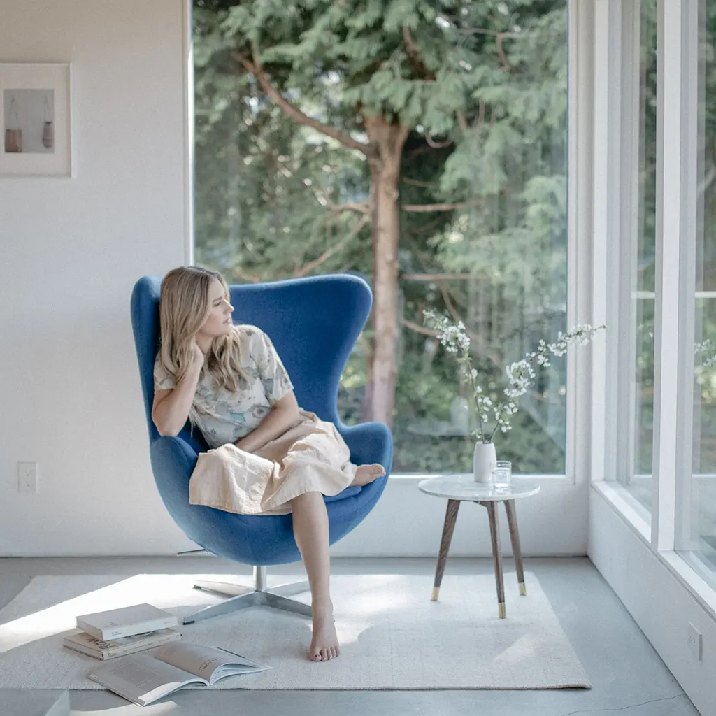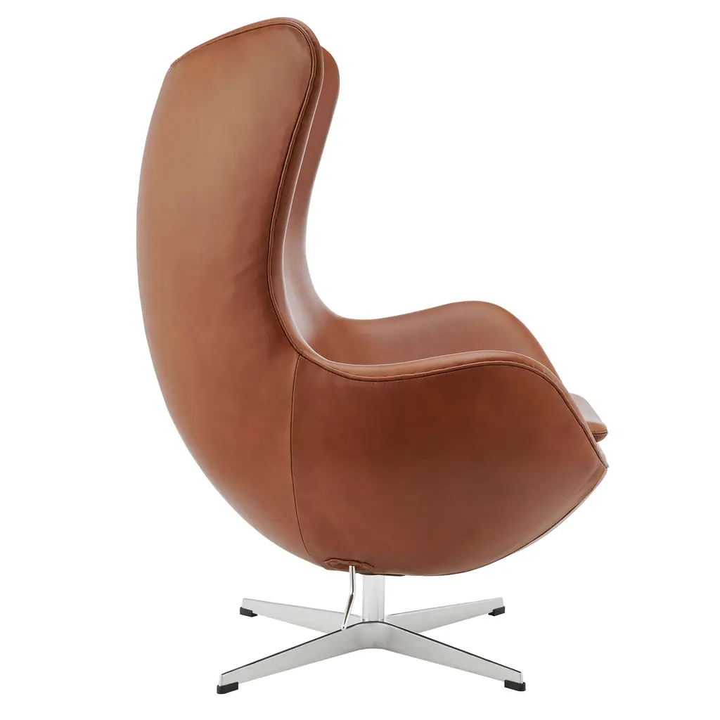 The Egg chair was designed in 1958 by architect and designer Arne Jacobsen.It was created specifically for the Radisson SAS hotel in Copenhagen, Denmark. It is believed that the Egg Chair was inspired at the time by Eero Saarinen's "Womb Chair". The unique shape of the Egg Chair provides a level of privacy with its"winged design." The Egg Chair originated from Jacobsen's garage, and was originally cast in plaster. Today, the chair has an adjustable tilt feature and is formed with fiberglass, with high-density polyurethane foam padding around the entire chair structure.