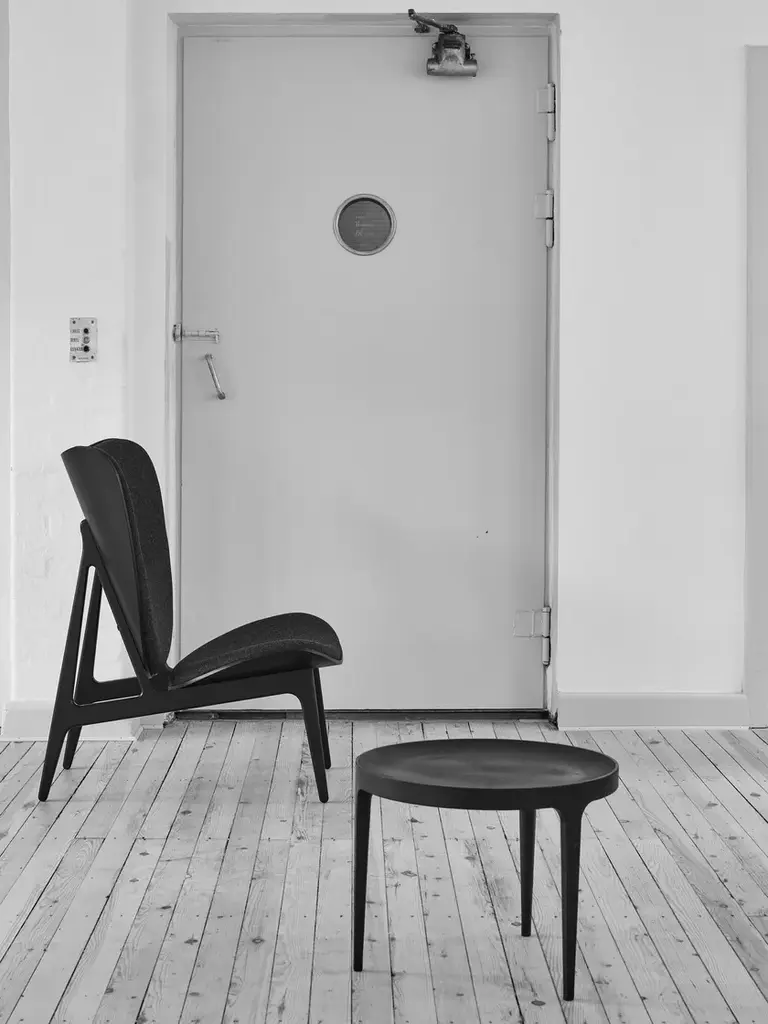 Elephant is an armchair with oak structure and fabric padding.The Elephant Lounge Chair is designed as a modern lounge chair and draws inspiration from the upholstered chairs of the 1950s and Japanese furniture design. The result is a light and elegant lounge chair where the elephant ear shaped back gently curves around the body providing superior comfort.The Elephant chair is hand-crafted with a solid oak wood frame. The chair comes in four frame variations: Natural, Dark Stained, Black and Smoked, and can be upholstered with leather, wool and sheepskin. The seat and back are made from the highest quality compression molded oak veneer shells. The two shells are pressed in the same press mold, and surround the body in a light soft curve. The legs are designed as one single profile without any visible joints. This enriches the experience of the material strength and exchange between the light and heavy dimensions: “elegant and simple but sturdy without being clumsy”.Frame: Natural, Dark Stained, Black, Smoked