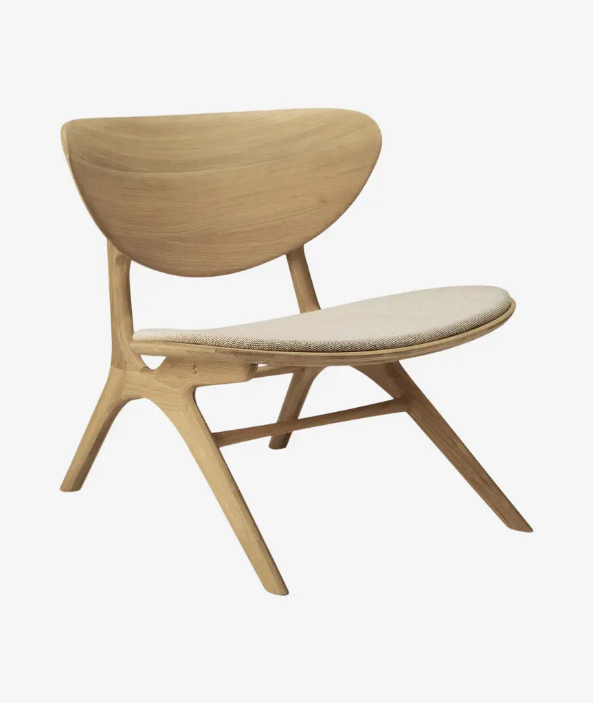 The Elephant Lounge Chair, in its front-upholstered version, takes inspiration from the classic 1950s Danish upholstered chairs and Japanese design aesthetic. Its defining feature is the broad, elephant ear-shaped backrest, which provides both visual appeal and a supportive embrace for the user. The oak veneer shell is compression-molded, curving gently to provide ergonomic support. This piece is hand-crafted using FSC-certified oak, highlighting Norr11s commitment to sustainability. Available in 4 oak finishes.
