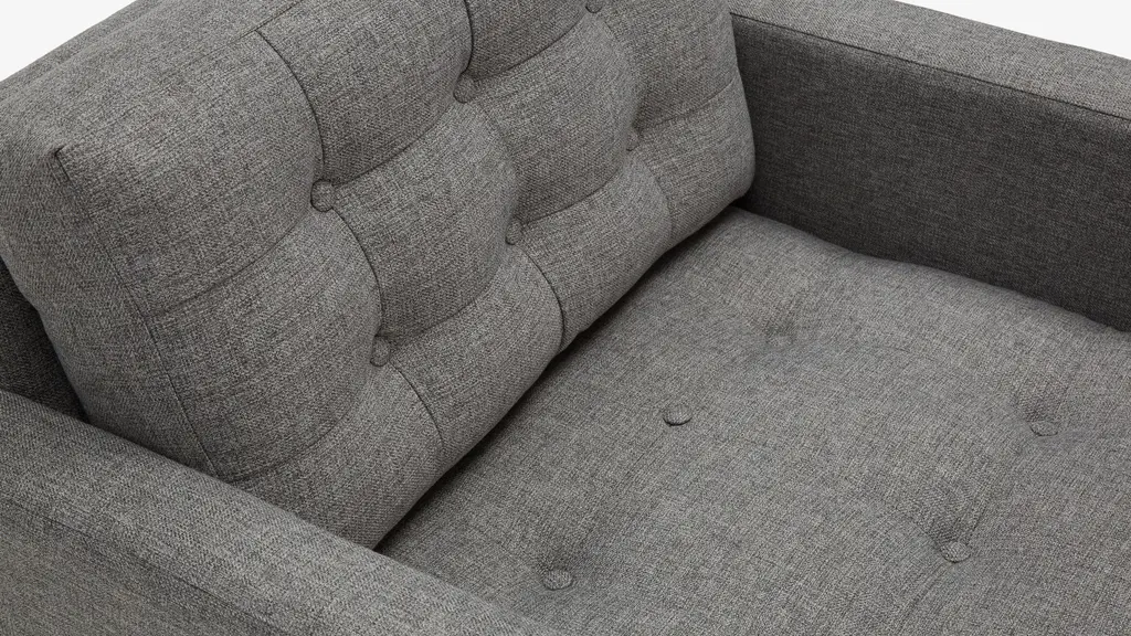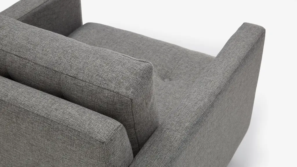 Sporting supportive cushioning and a vintage outline, the Eliot Apartment Chair brings a sophisticated cool to any small space—whether you’re kicking back with your favorite book or settling in for a nightcap. Merging button tufting with a Mid-Century form and cozy design, this refined accent will add a burst of vintage chic to your room layout. With its compact design, you’ll never need to compromise on space or style.