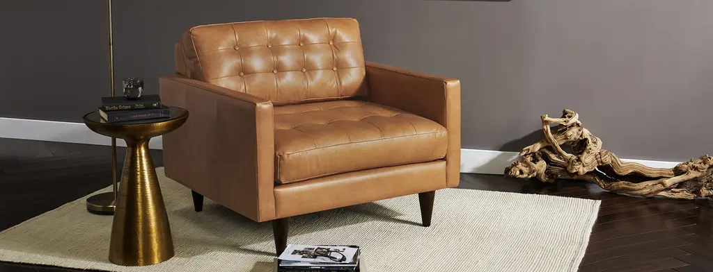 Adding a vintage flair to any lounge or office, the Eliot Leather Chair invites you to kick back and relax with a good read for some much needed “me time”. Combining soft leather with a vintage, Mid-Century silhouette and supportive cushioning, this seat delivers a timeless aura to any living space. Whether you’re seeking an unforgettable accent or a room-defining staple, the Eliot balances coziness and style to revolutionize the way you lounge.