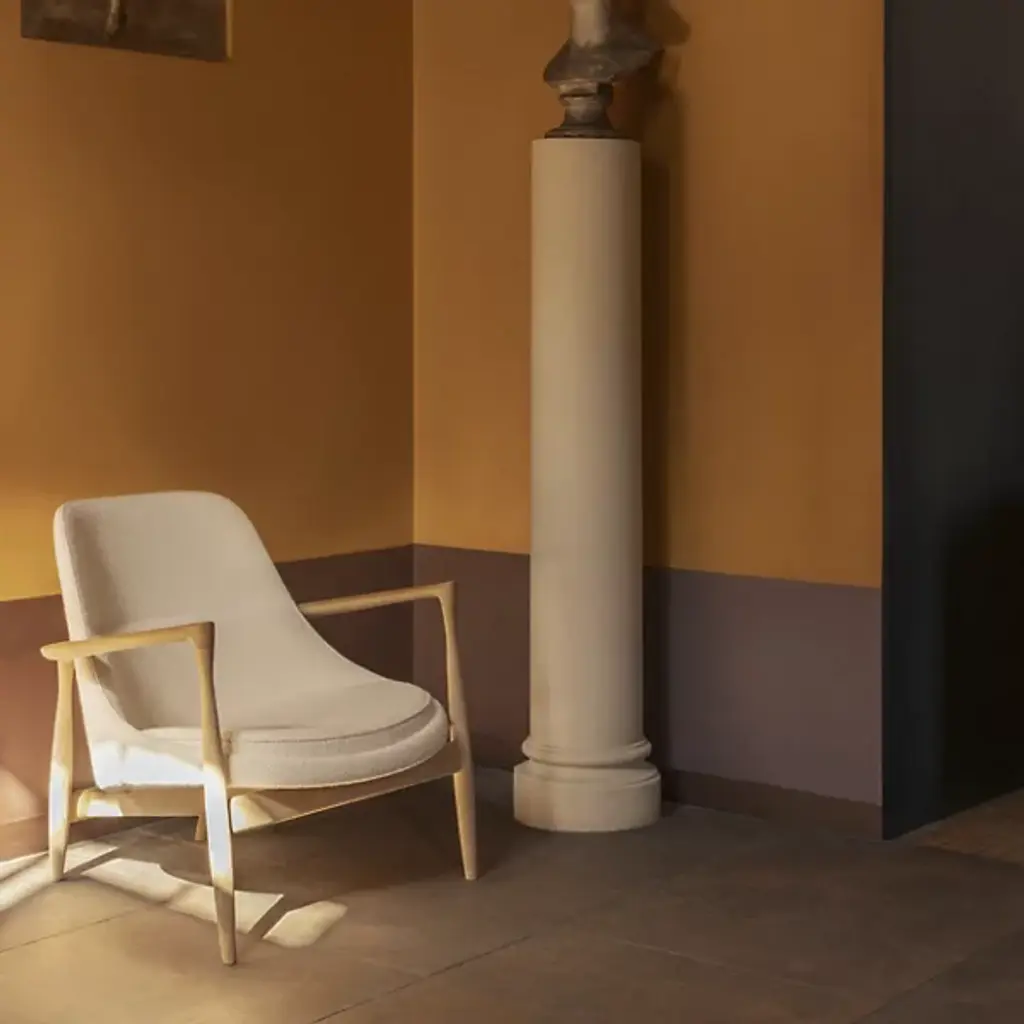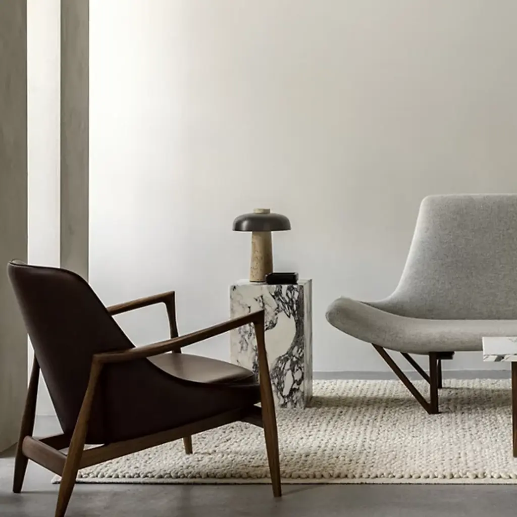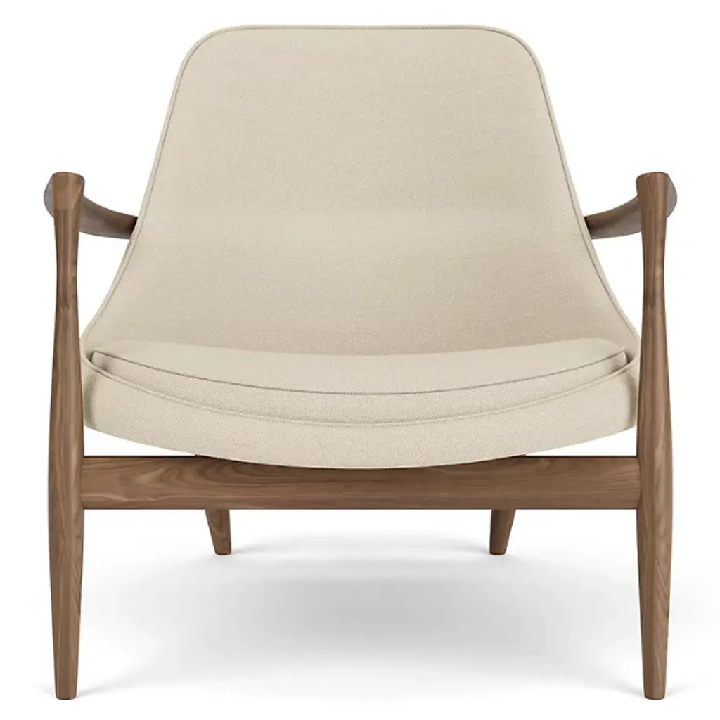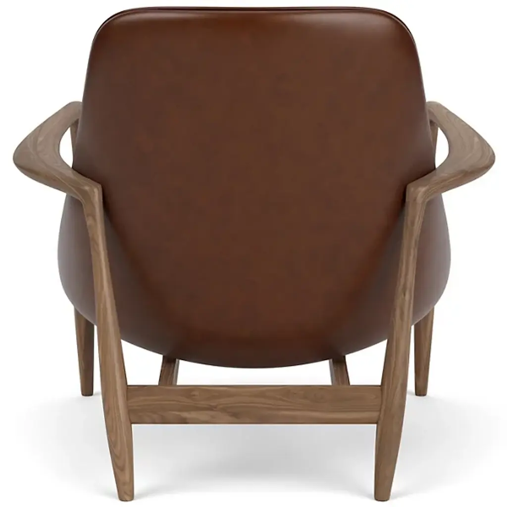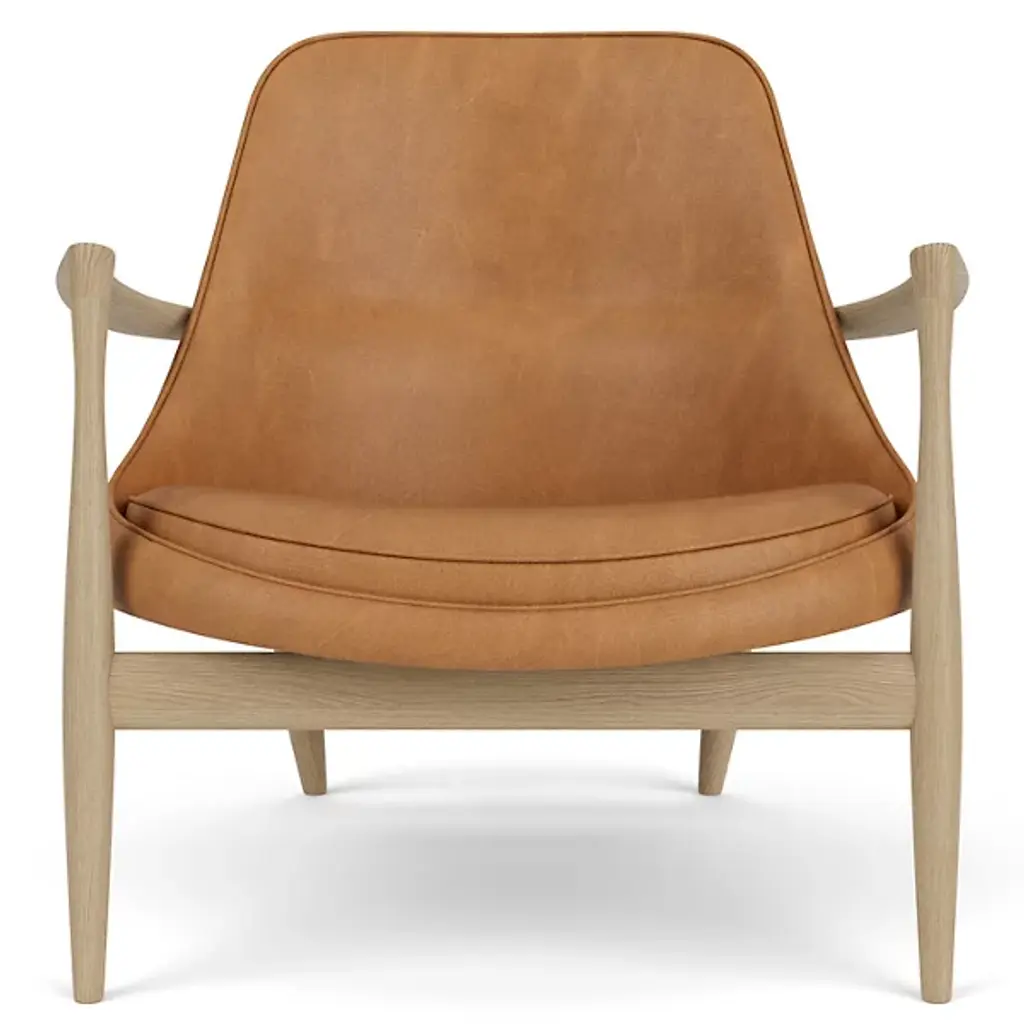 The Elizabeth Lounge Chair from Audo Copenhagen, formerly known as Menu, is a comfortable and regal piece, named after Queen Elizabeth after she purchased a pair on a visit to Copenhagen in 1962. The celebrated designer Ib Kofod-Larsen’s pieces emphasize detail, proportion, and refinement. Here a wood framework offers a timeless element in its organically shifting hues and texture. This framework slants to give one a pleasant lean when lounging. Contoured legs and armrests complement the curves of the body. Foam filler adds comfort while a cradling seat shell made from upholstered leather gives one a restful posture that’s suited for the home or a palace.