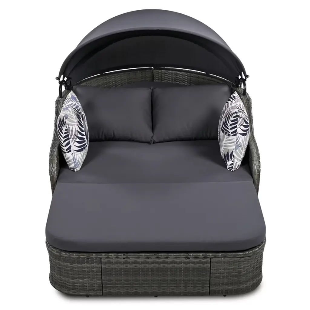 Eljget Patio Daybed With Canopy, Outdoor Sunbed Double Lounge Chair, Pe Rattan Daybed For Garden Poolside Patio, Gray