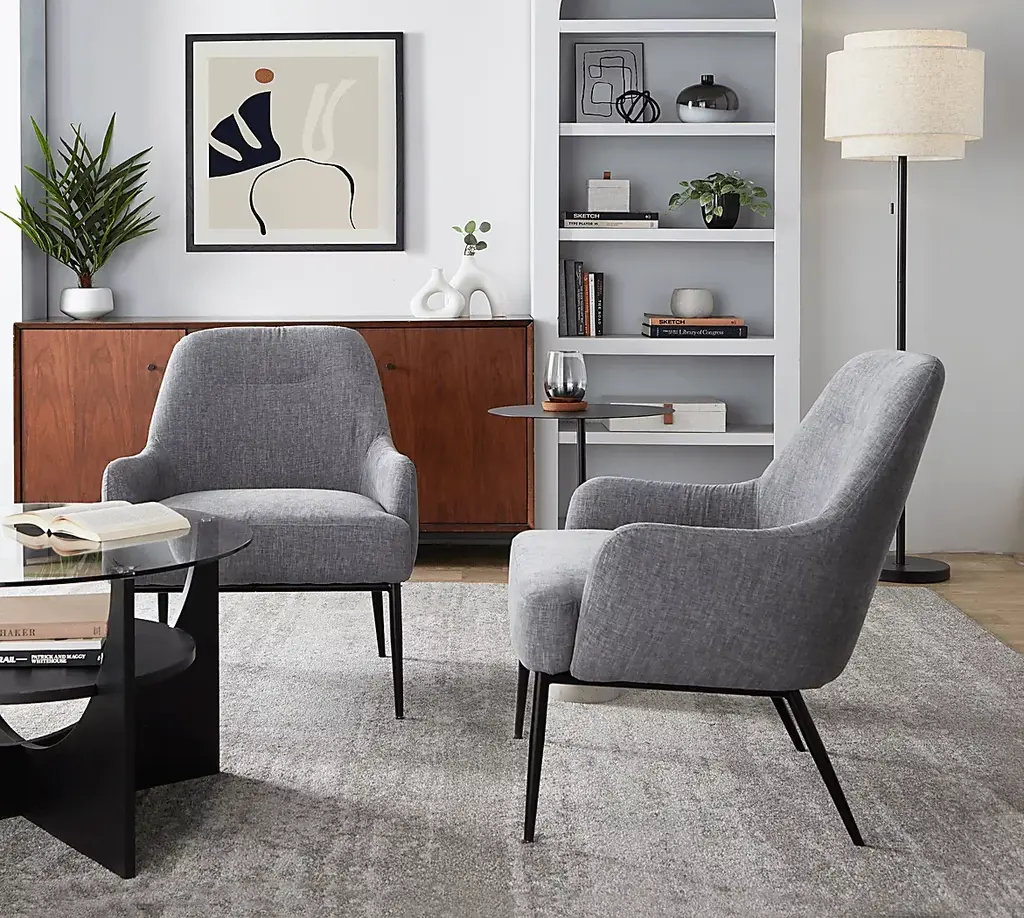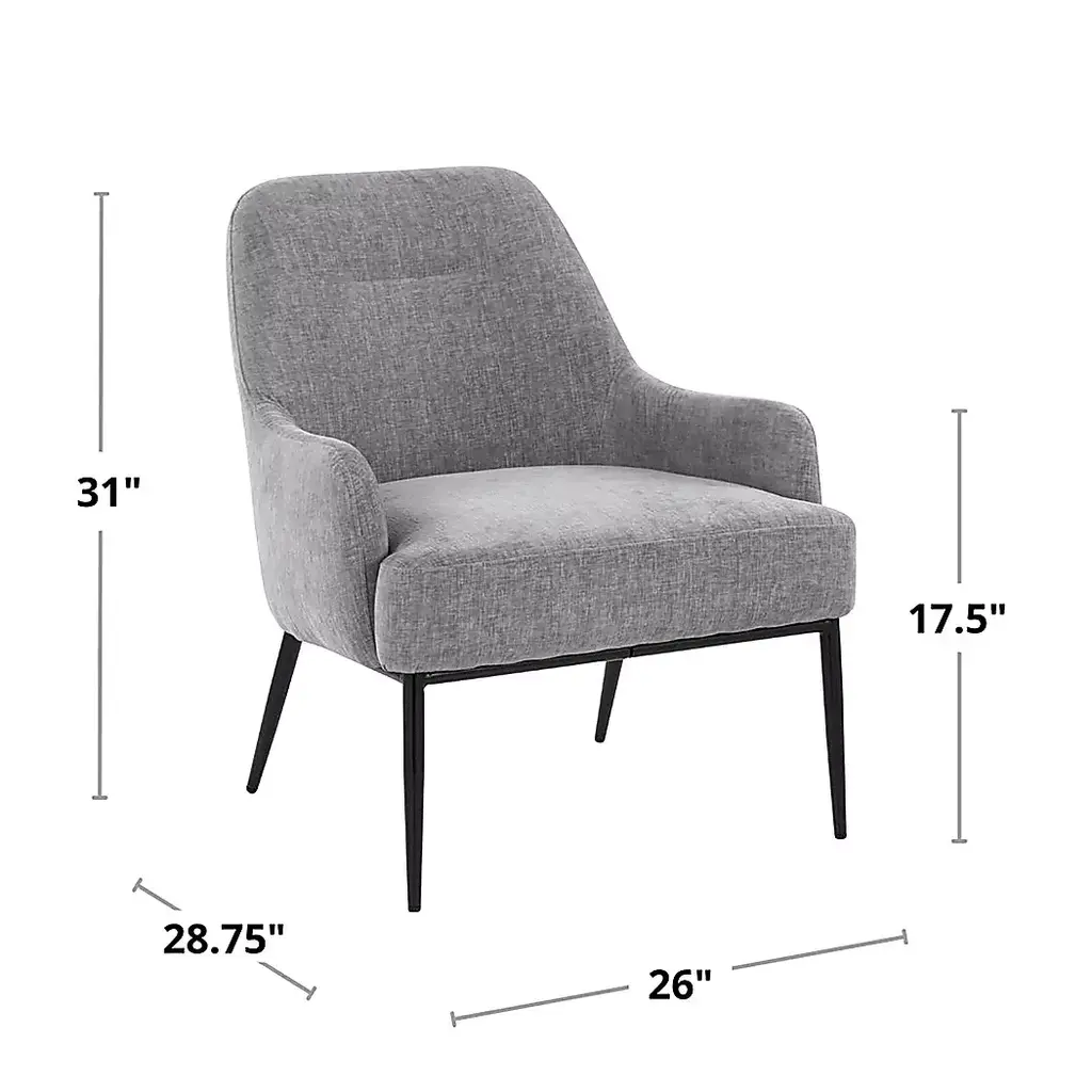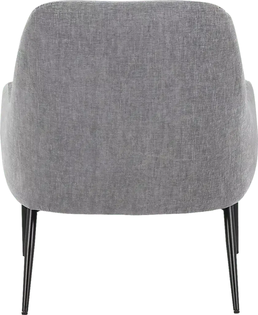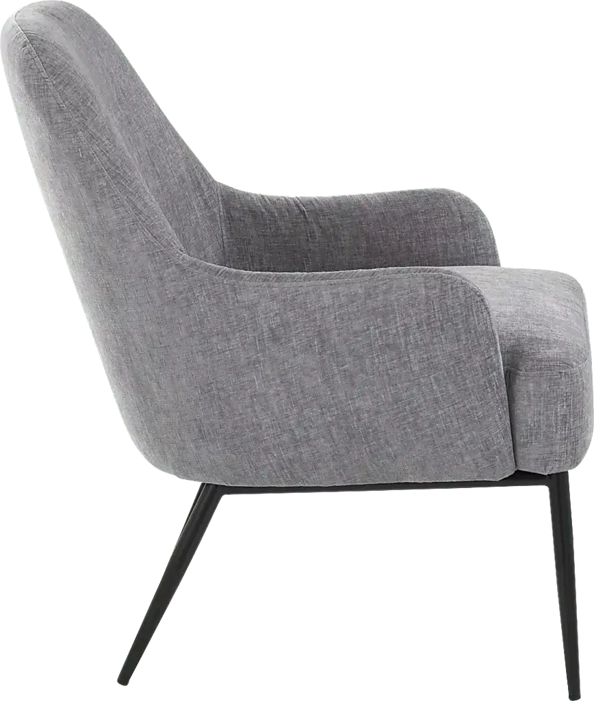 Sink into comfort with the Emil Accent Chair, a chic blend of mid-century charm and contemporary style. Its soft fabric upholstery and sleek black metal legs offer a sophisticated look, while the retro-inspired seat design adds timeless elegance. Perfect for any room, the Emil adds a touch of refined comfort to your home. Customer assembly required.