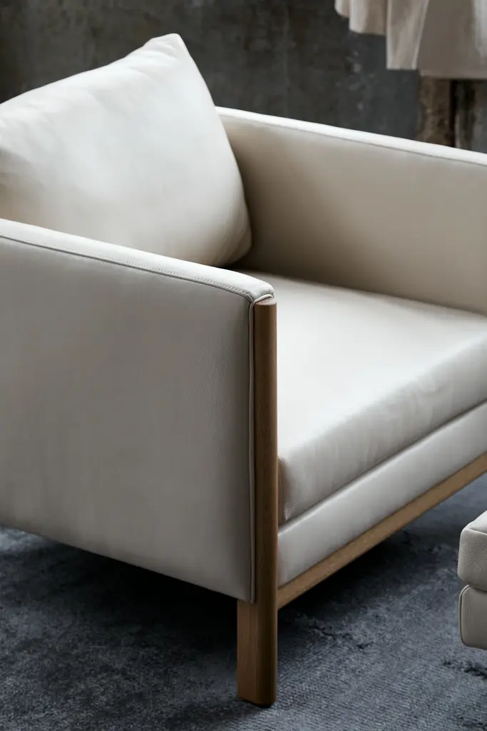 in Brooklyn, Egg Collective was founded in 2011 by designers Stephanie Beamer, Crystal Ellis and Hillary Petrie. The trio adeptly meld their individual areas of expertise, including art, architecture, and woodworking, into sculptural, heirloom-quality modern furniture that evokes their own histories and memories. Beamer's cousin Mary Elizabeth - named after her grandmother and fondly known as Emmy - inspired the Emmy Armchair (2019). Reflecting its namesake's brightness and strength of character, the sofa is tailored but relaxed. A baffled back cushion with a feather-silk fill adds just the right amount of support. “The Emmy speaks to multiple generations," says Beamer. “Youthful yet mature, it resonates with a sense of modernism and tradition. It's a place to feel at home." Made in U.S.A.