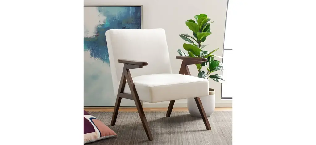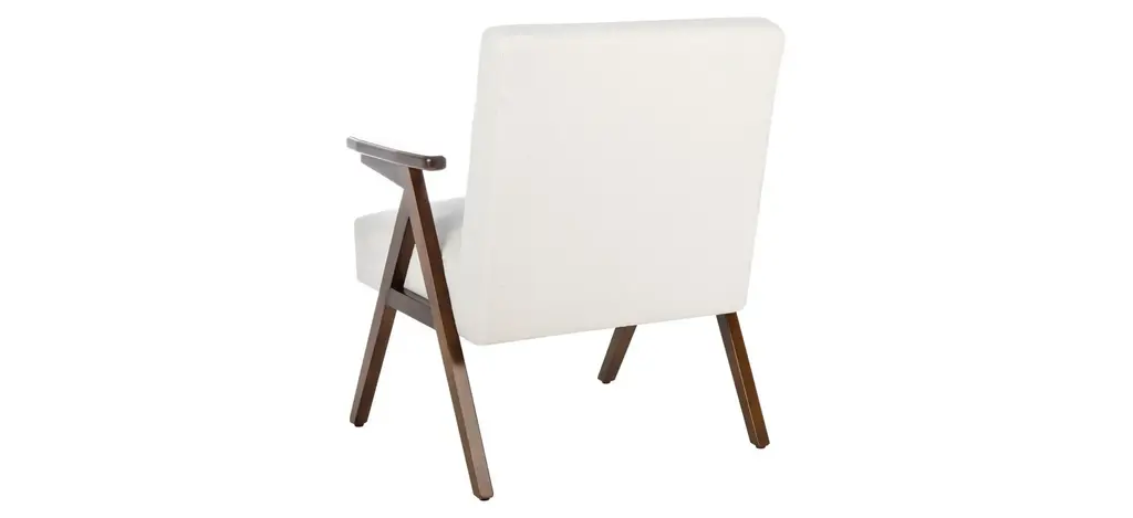 Retro chic meets contemporary cool in this phenomenal Emyr Armchair. Mid-Century charm stylishly emanates from a walnut-finished A-frame base, perfectly paired with soft white linen cushions that ensure endless relaxation and comfort.