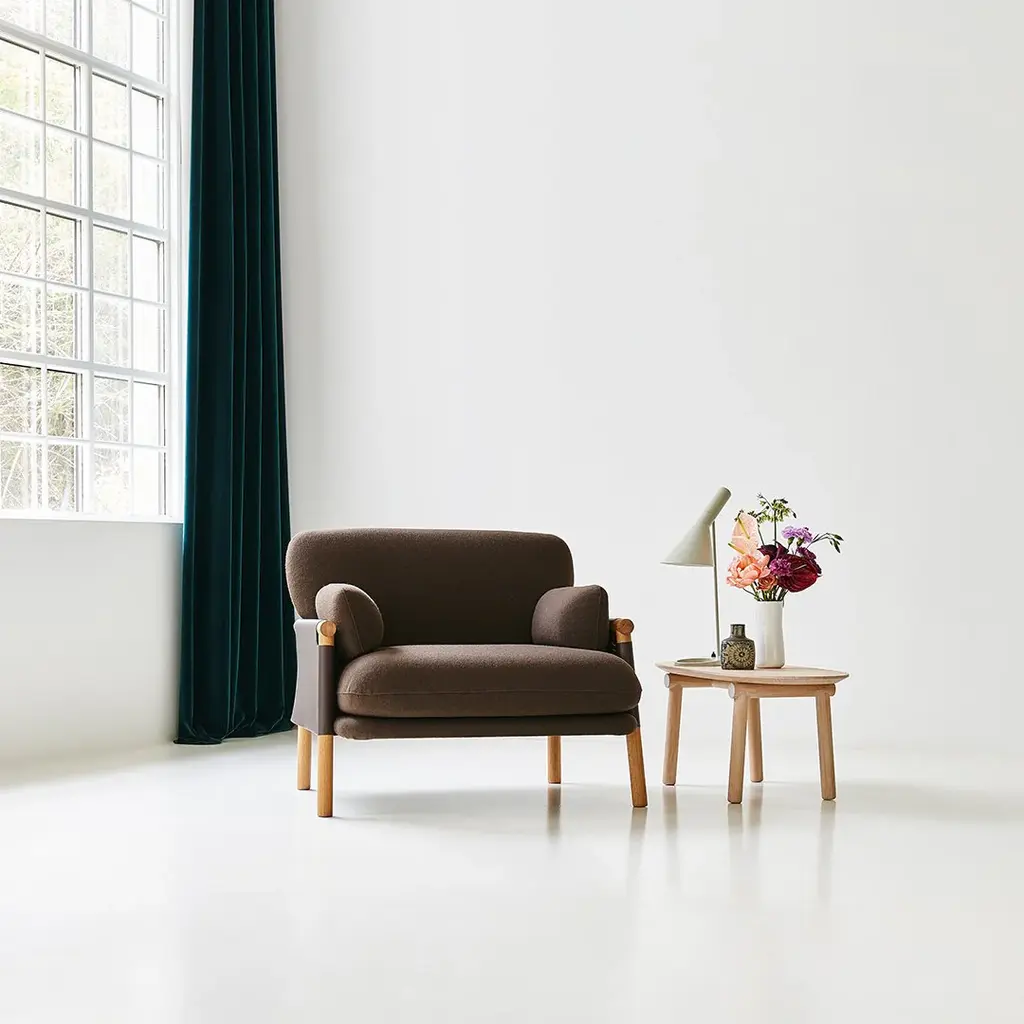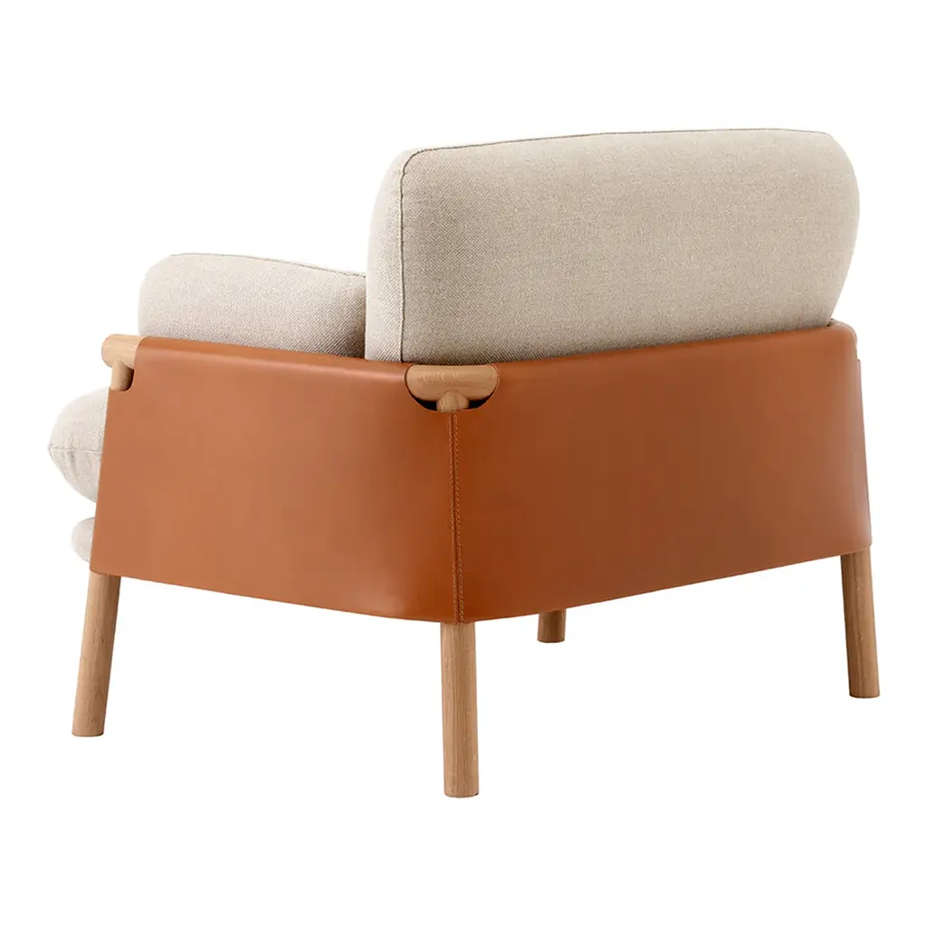 The Swedish designer Monica Forster's style is characterised by her eternal love for new materials and beautiful pure shapes. With Savannah, Monica Forster celebrates the craftsmanship that Erik Jorgensen Mobelfabrik masters. Savannah consists of an uncompromising sofa and armchair in elegant natural materials. The chair is built around a solid wooden core, which is enclosed by thick leather of the finest quality. The leather detail creates a beautiful frame around the soft handsewn seat and back cushions.